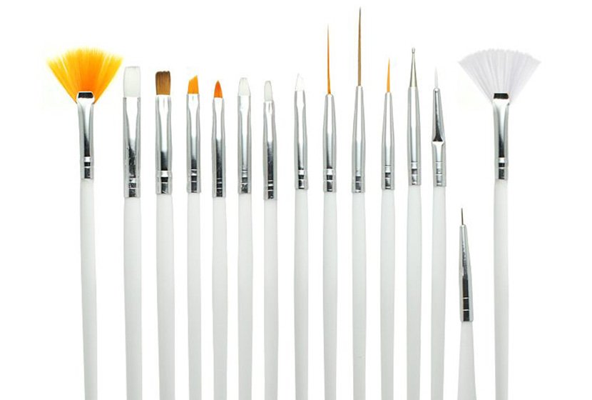 Your 15-piece nail art brush set should consist of one dotting tool too. It has a very small head tip which helps in creating many small dotted effects on the nails. For larger dots, you can use other bigger dotting tools that are available in the market.