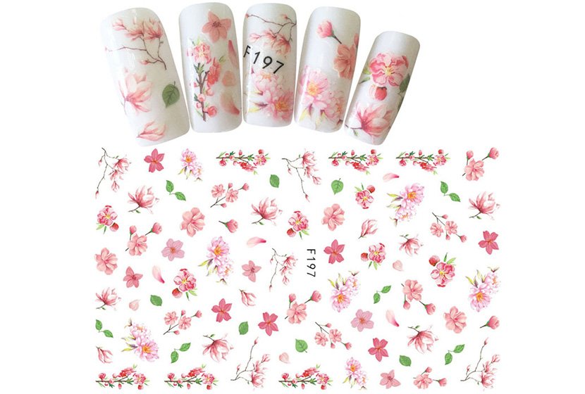 • Floral stickers: These are the most common type of stickers. There are over countless types of flowers that you can stick to your nails and come in a variety of sizes, shades, and combinations. Therefore, you will get one for any need.