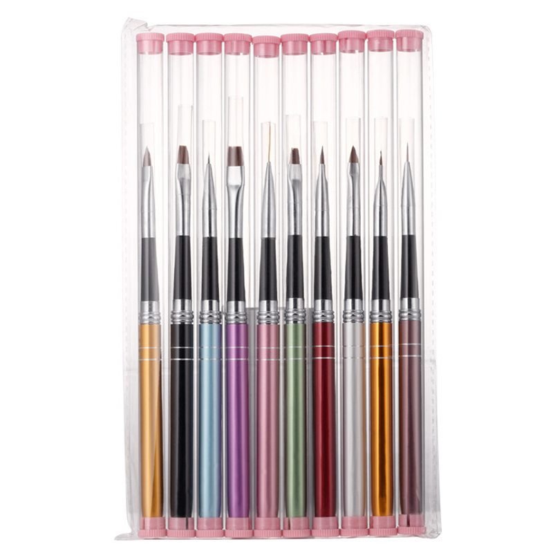 10 PCS Color Plated Metal Handle Nail Art Design Brush Set