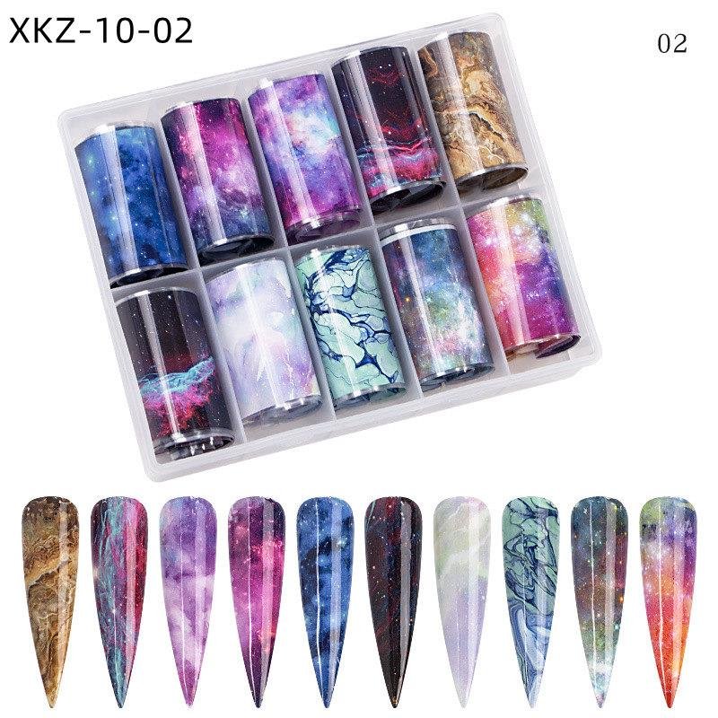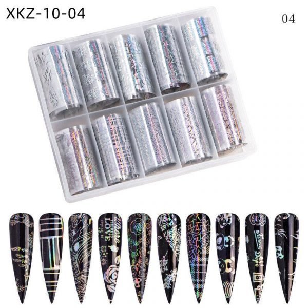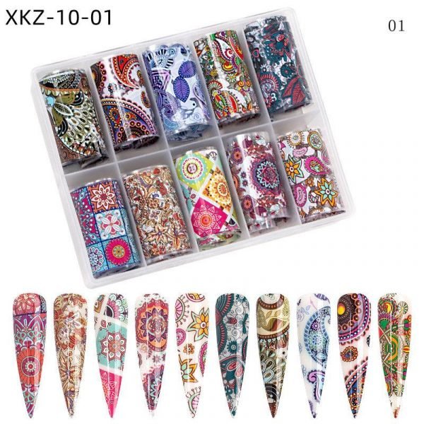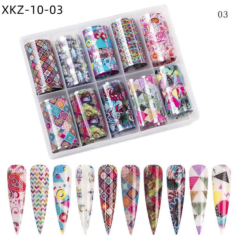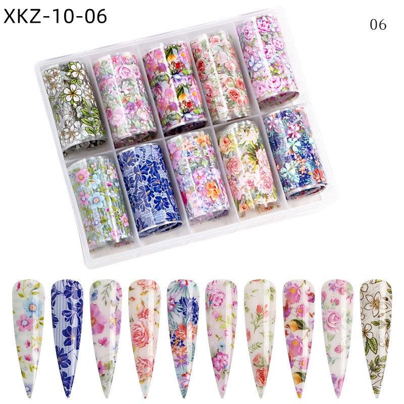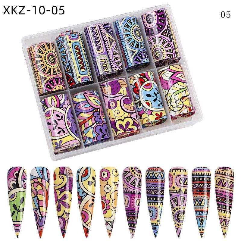10 Rolls 100x4cm Mixed Design Nail Transfer Foil Paper XKZ-10