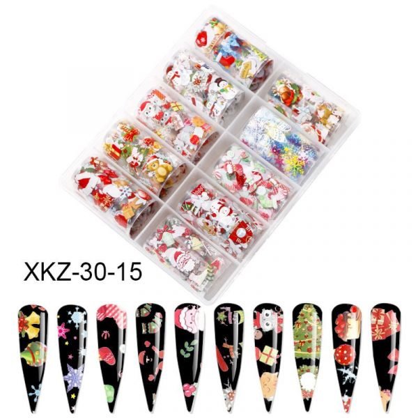 10 Rolls 4x100cm Christmas Halloween Pattern Nail Transfer Foil Paper XKZ-30