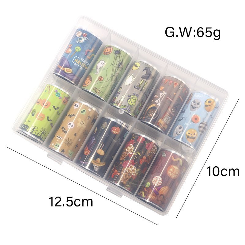 10 Rolls 4x100cm Christmas Halloween Pattern Nail Transfer Foil Paper XKZ-30