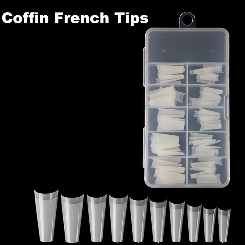1. These 100pcs Coffin Shape Flat Head French Nail Tips are packed in a Box.
