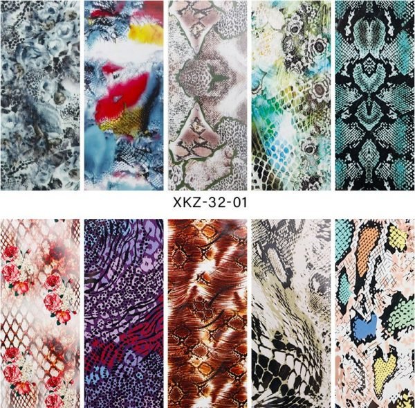 10Rolls/Set 100x4cm Mixed Design Nail Transfer Foil XKZ-32