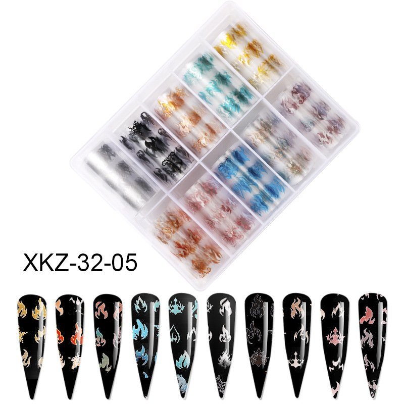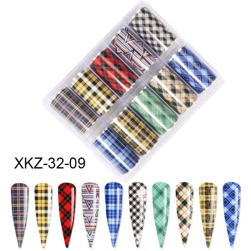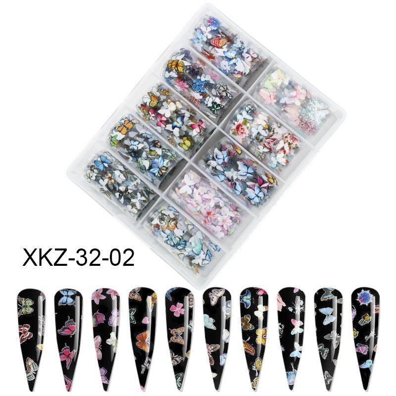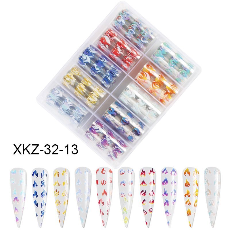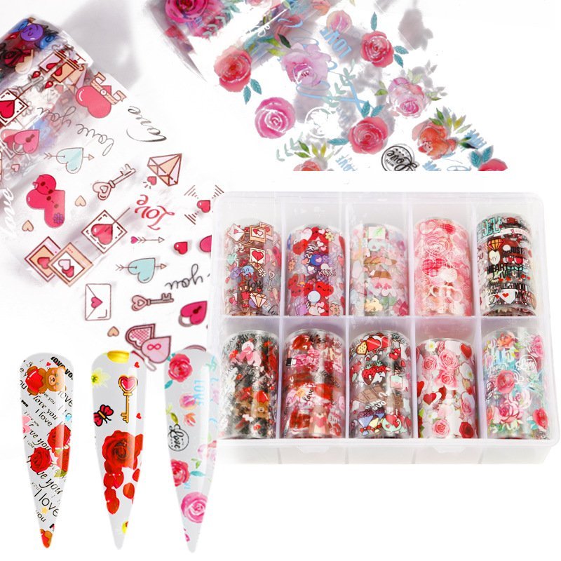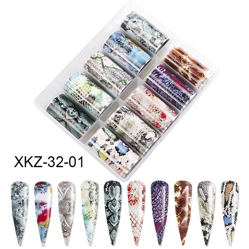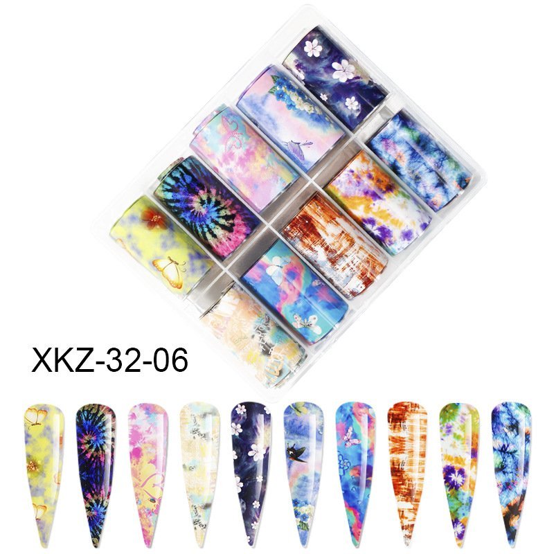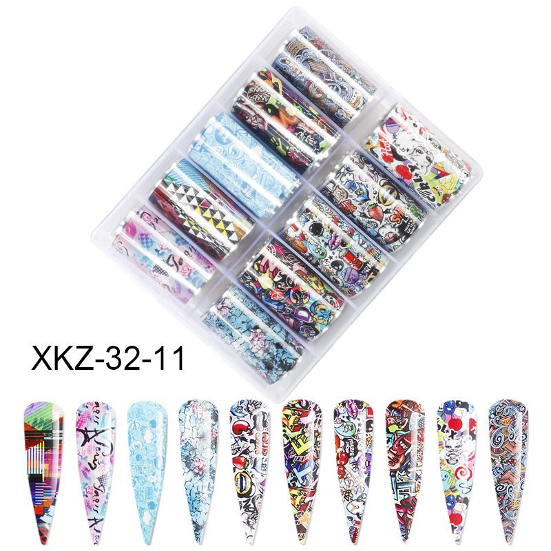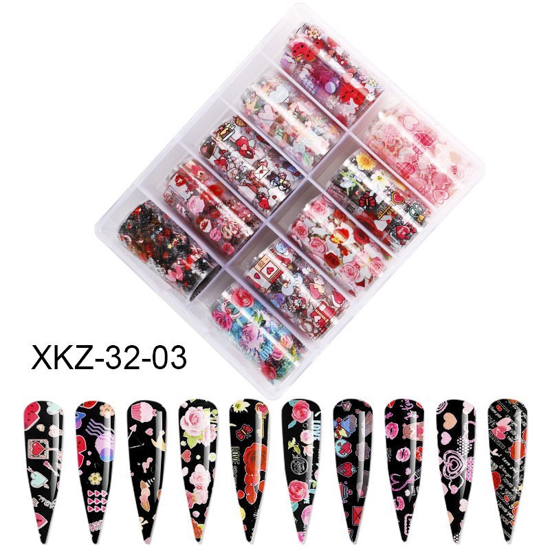 10Rolls/Set 100x4cm Mixed Design Nail Transfer Foil XKZ-32