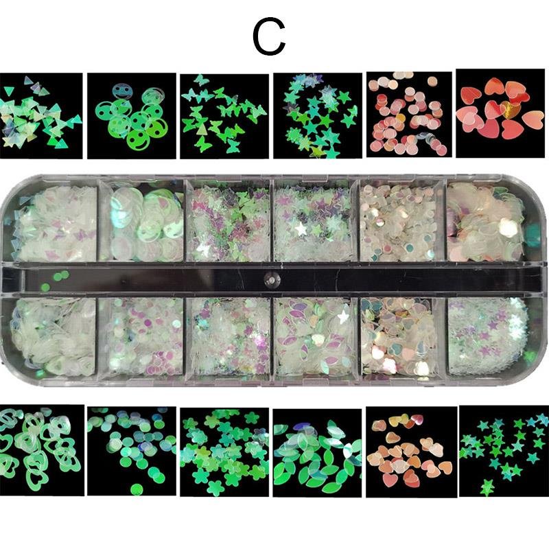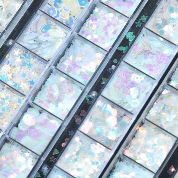 12 Shaped Manicure Holographic Nail Sequins Iridescent Mermaid Flakes