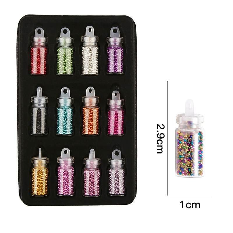 12 Bottles Crystal Caviar Beads Multicolor Micro Beads For 3D Nail Art Decorations