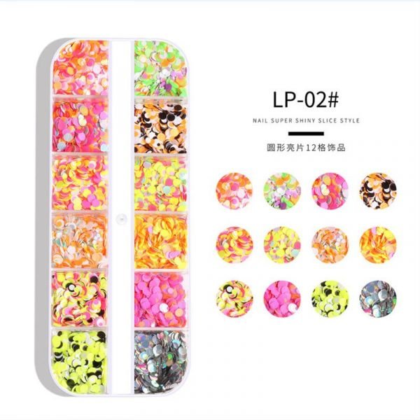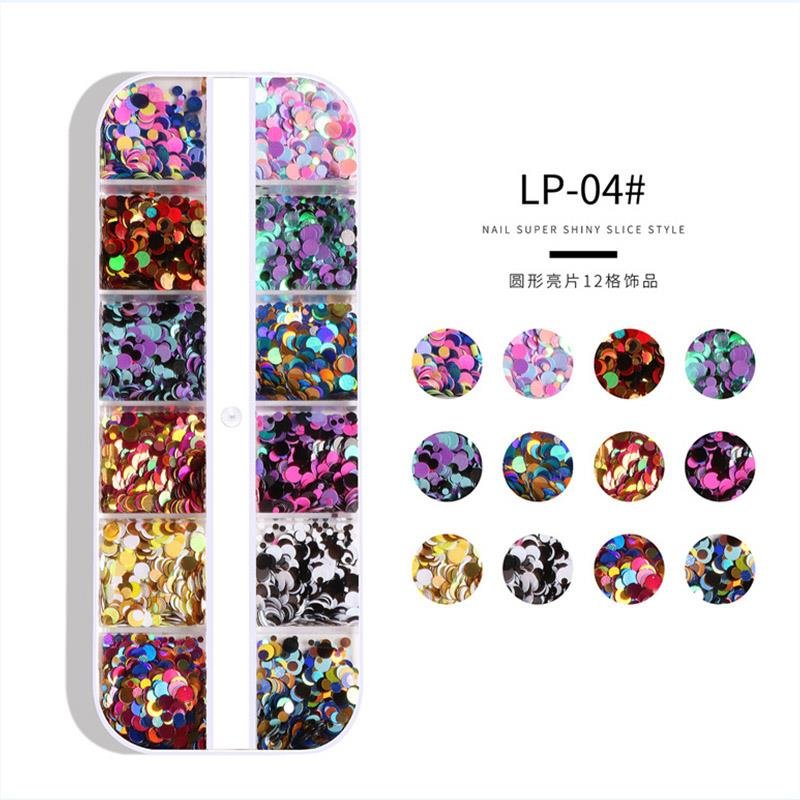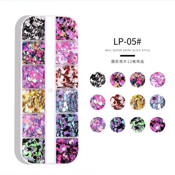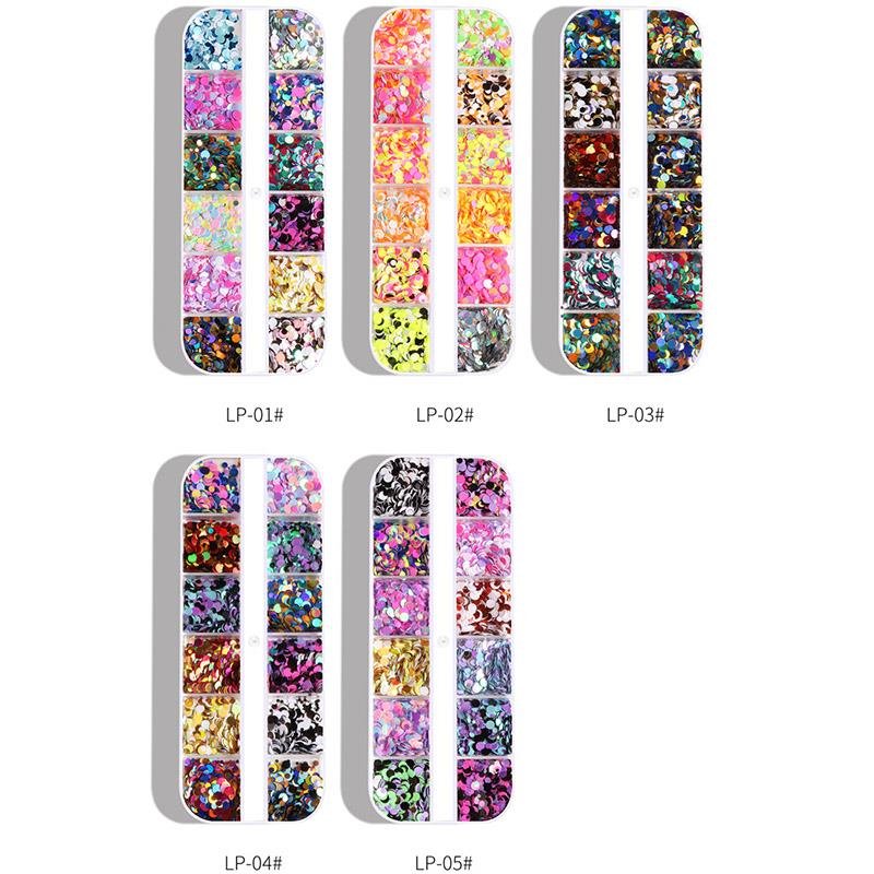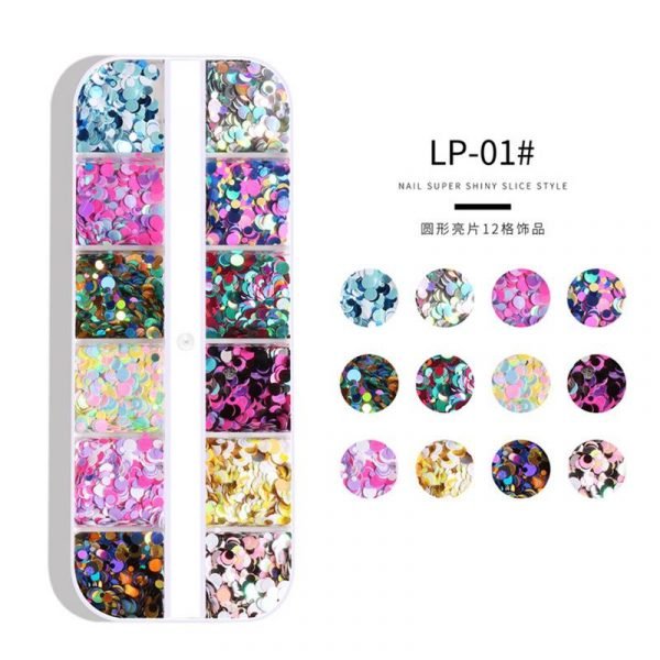 12Cells Round Shape Thin Mixed Colors Of Nail Art 3D Glitter Sequins