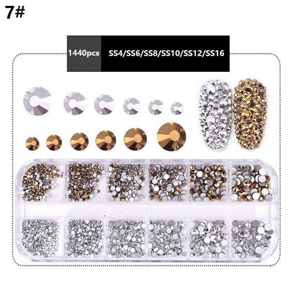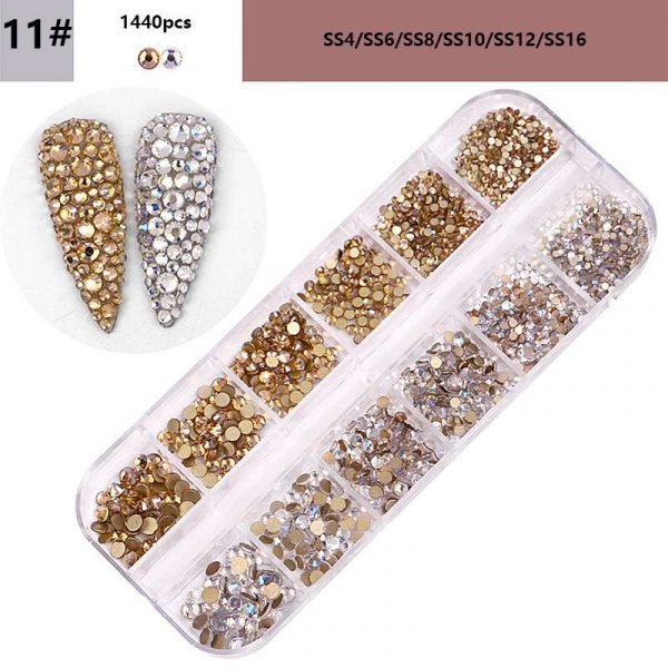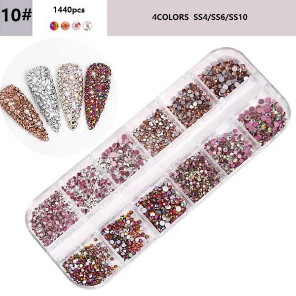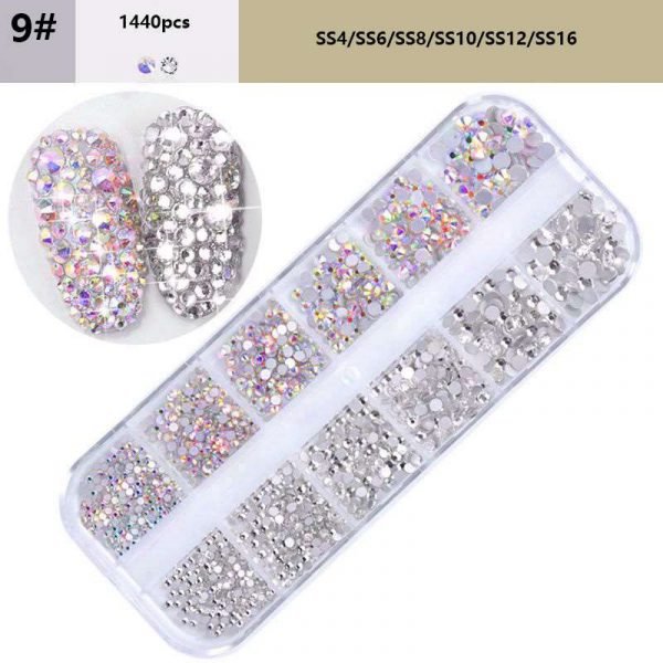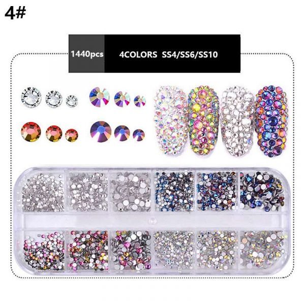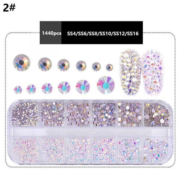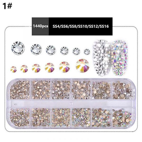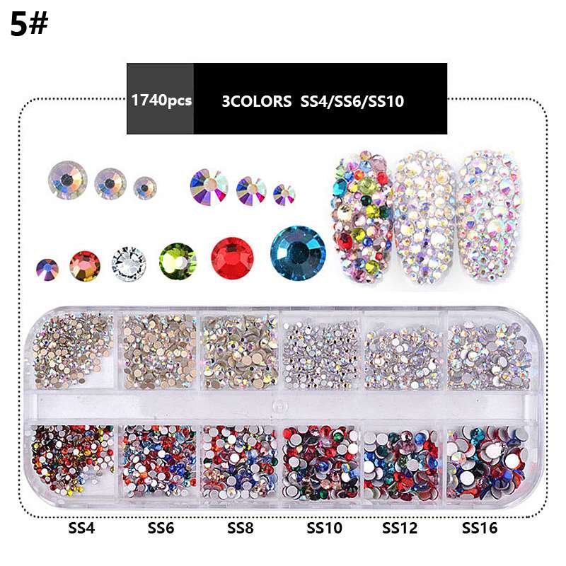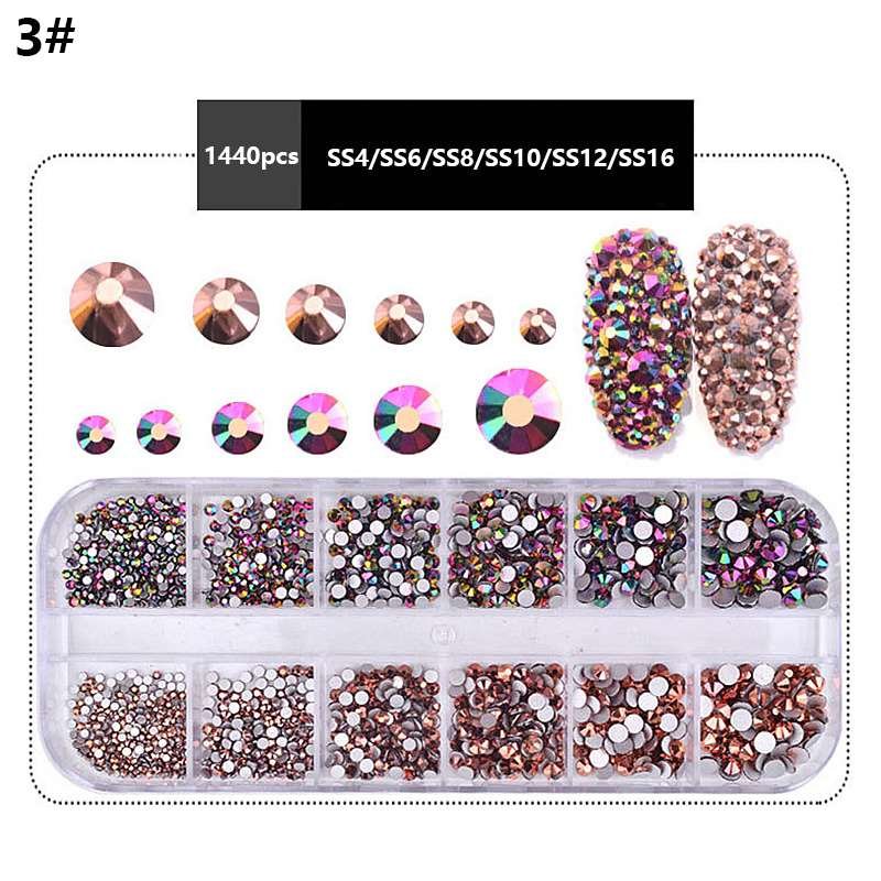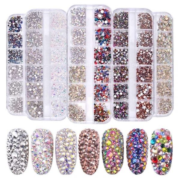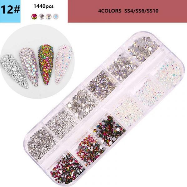 12Grids Mixed Color Varied Sizes Nail Art Flat Rhinestone Nail Decoration Gem