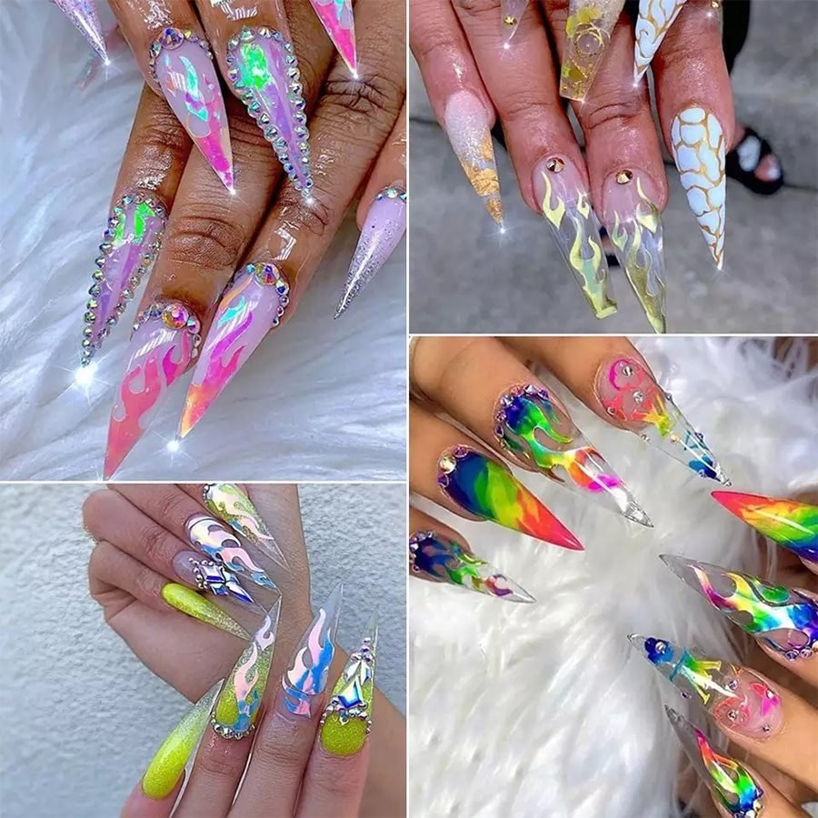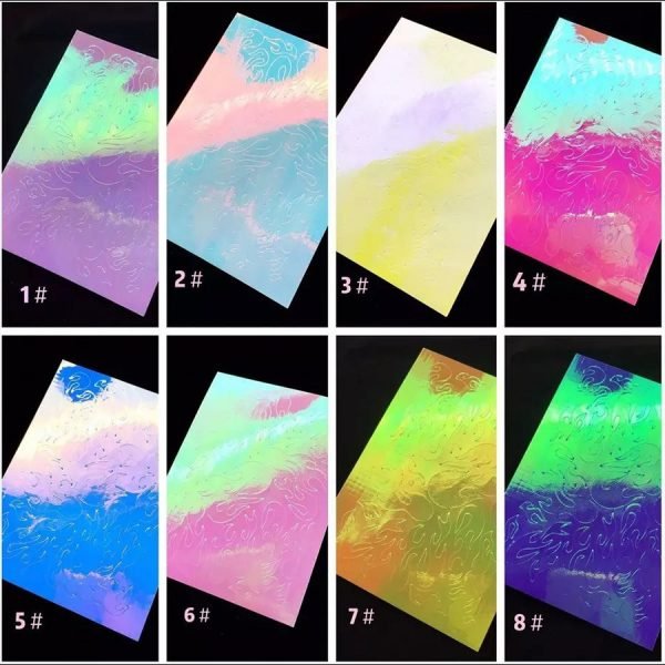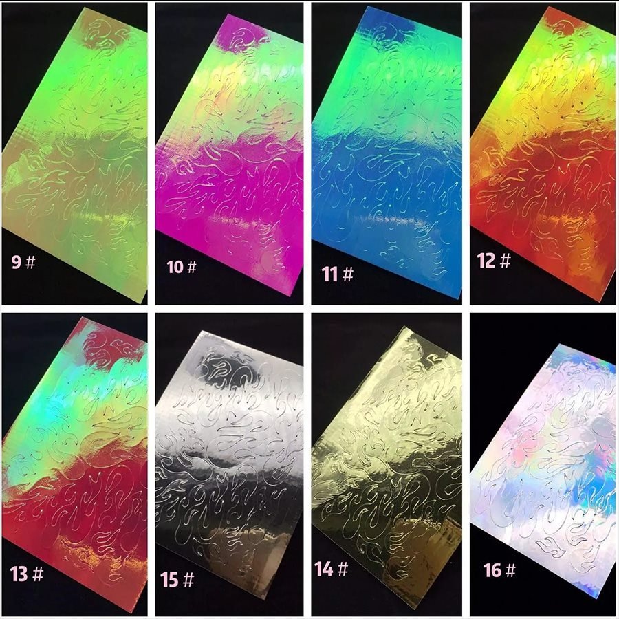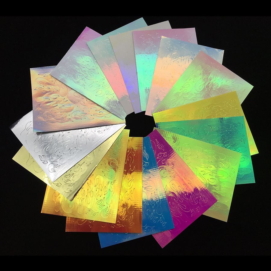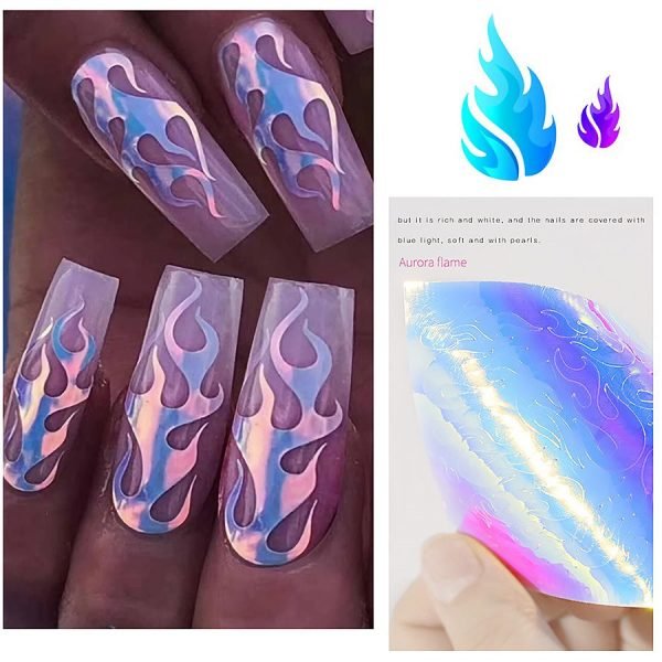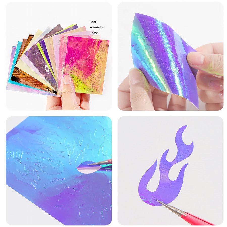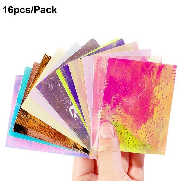 16Pcs Per Set Holographic Aurora Self-adhesive Flame Nail Sticker