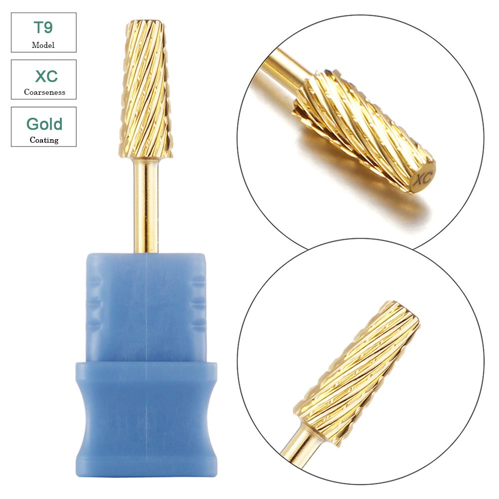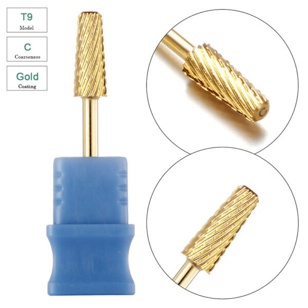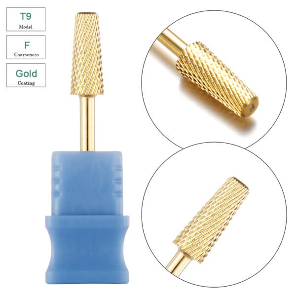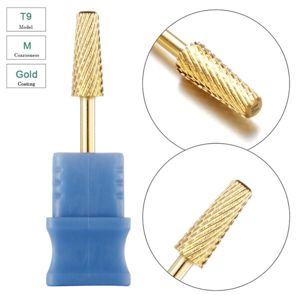 3/32” Small Tapered Barrel Shape Chamfer Top Cross Cut Gold Coating Tungsten Carbide Nail Drill Bits – Model T9