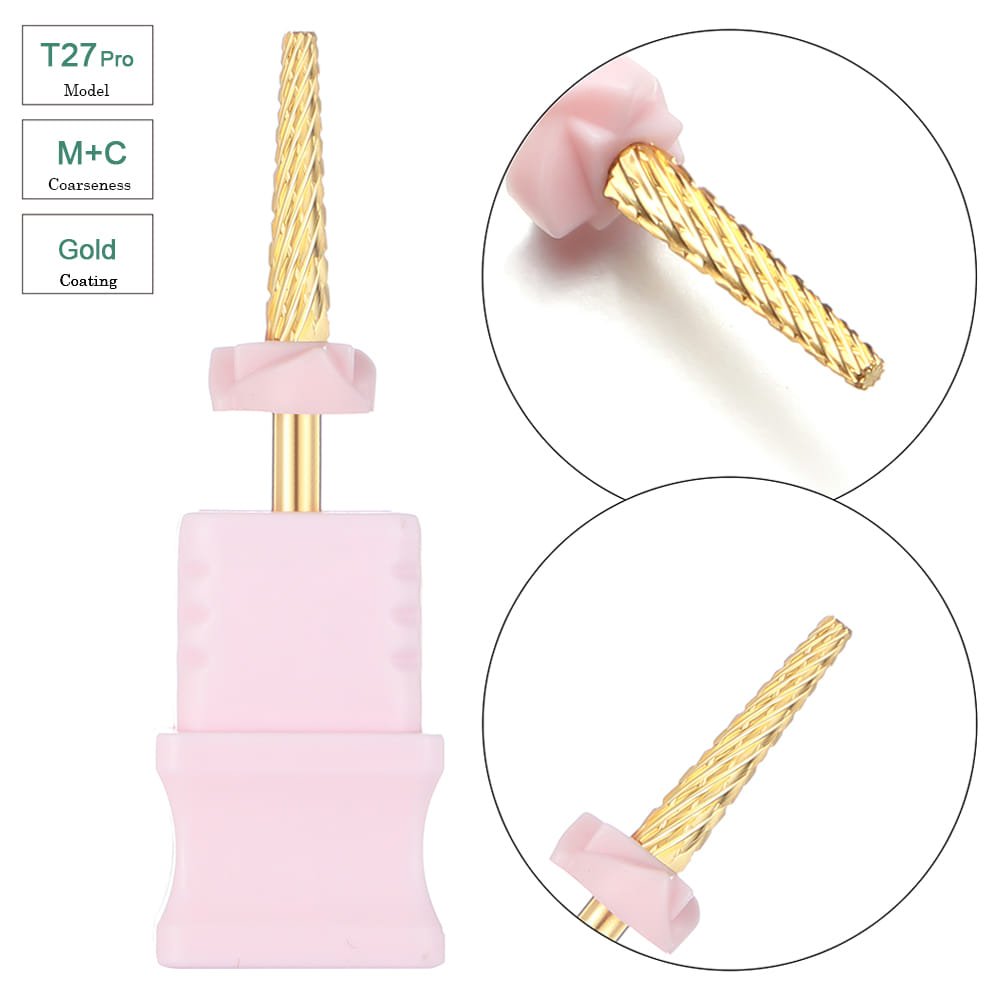 3/32″ Tapered Barrel Gold Coating Nature Nail Buffer Carbide Tungsten Nail Drill Bit – Model T27Pro