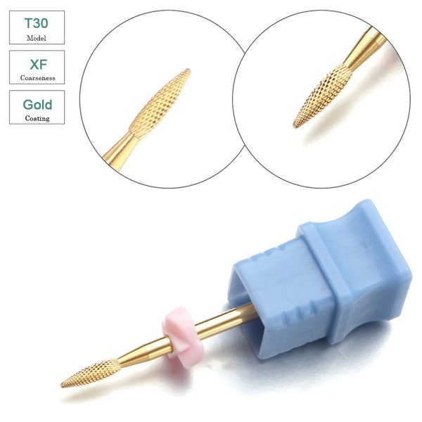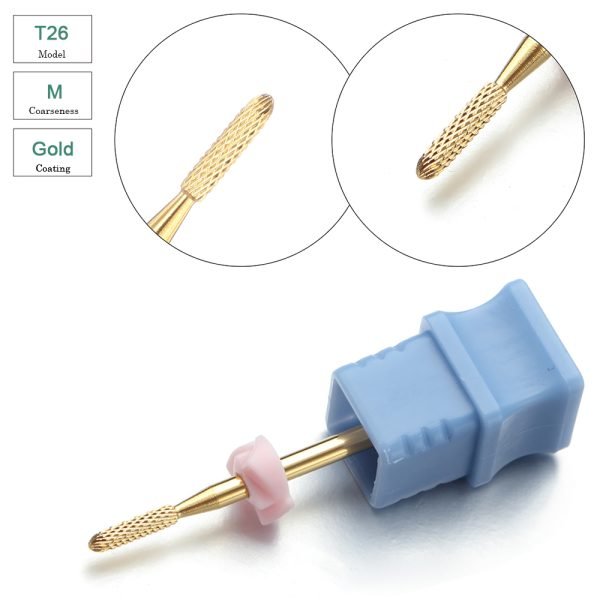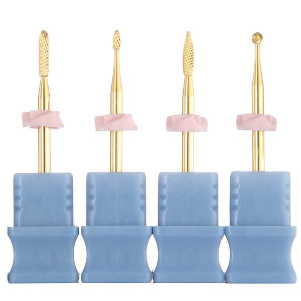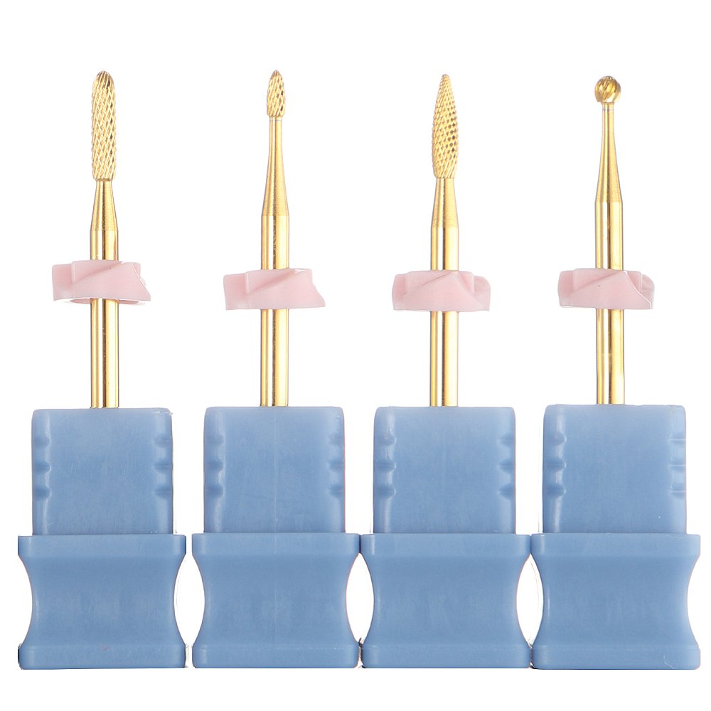 4 Shapes Gold Coating Manicure Preparation Tungsten Carbide Nail Drill Bits Model T26-T30