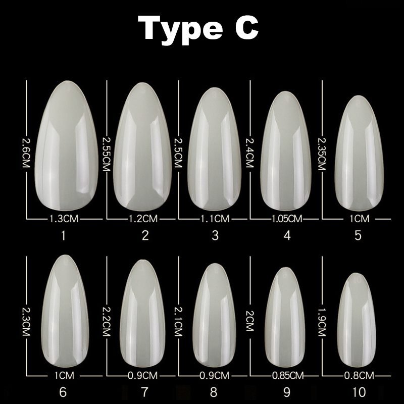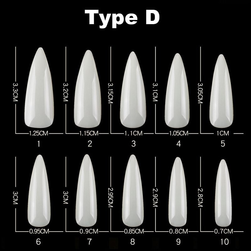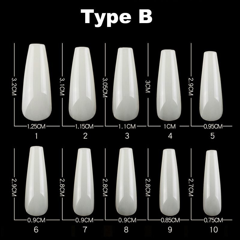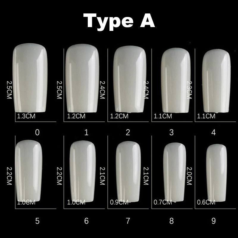 4. There’re 5 different types of nail tips for you to choose from long coffin nail tips, almond nail tips, oval nail tips, stiletto nail tips, square nail tips,etc.