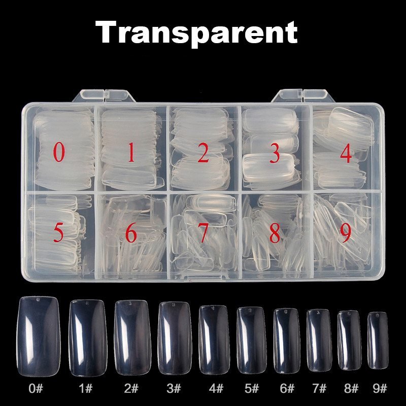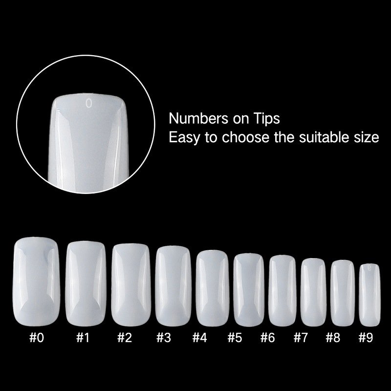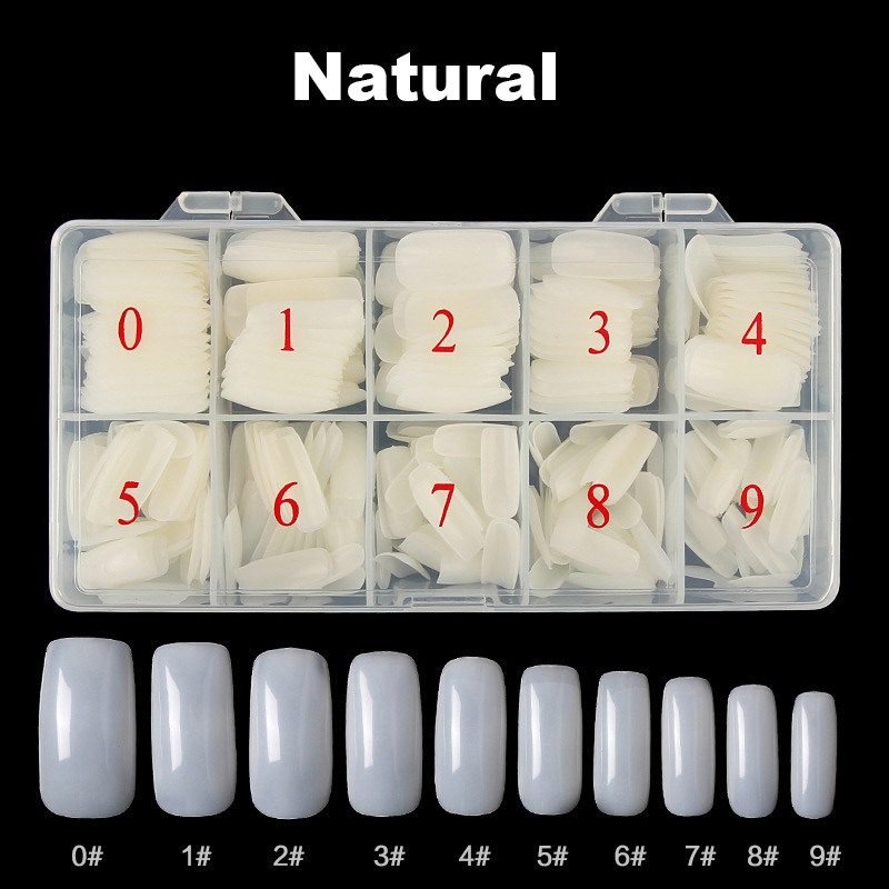 - This Full Cover Nail Tips come in different sizes 0-9 (50pcs of each size and total 500pcs), and each size is separately packed