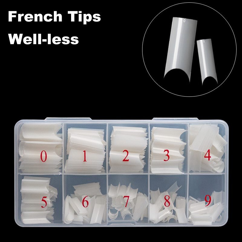 - These 500pcs C Curve Well-less French Nail tips are packed in a Box.