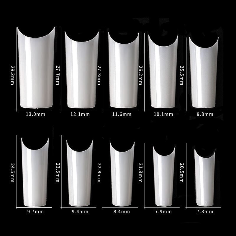 - This C Curve French tips come in different sizes from 0-9 (50pcs of each size makes totally 500pcs), and each size is separately packed.