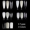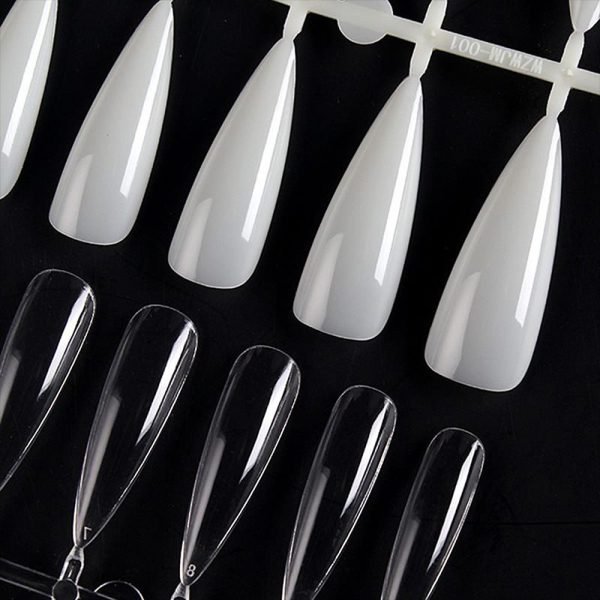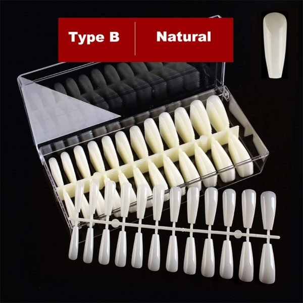 - There’re 5 different types of nail tips for you to choose from coffin nail tips, almond nail tips, oval nail tips, stiletto nail tips, square nail tips, etc.