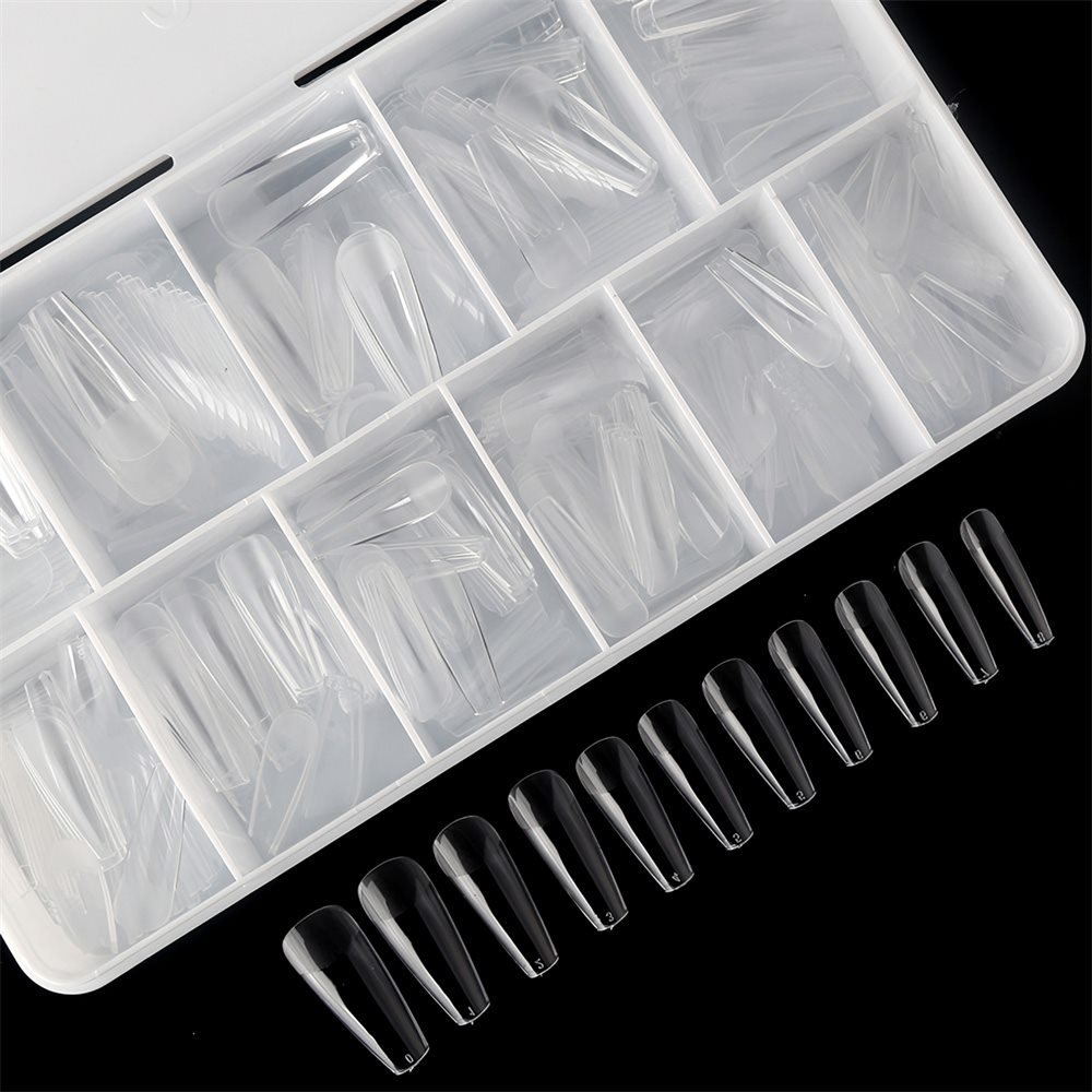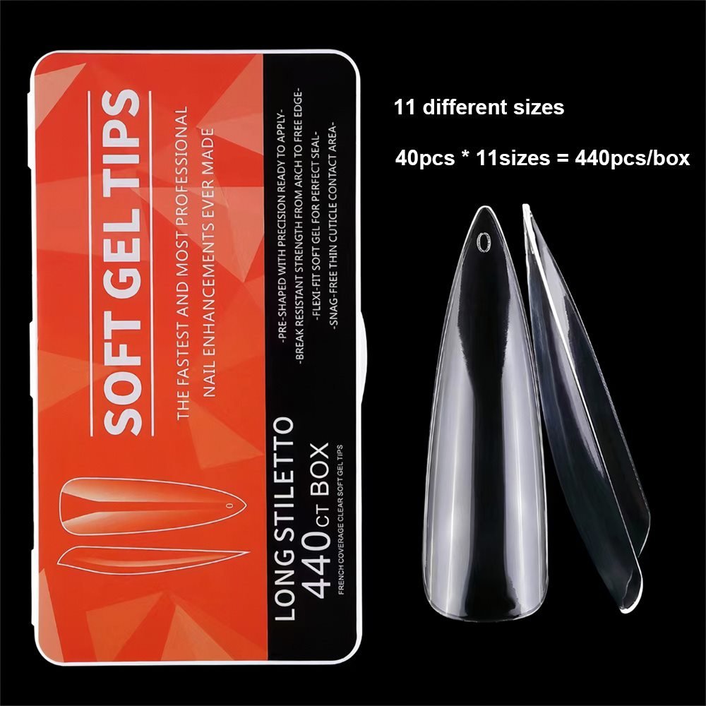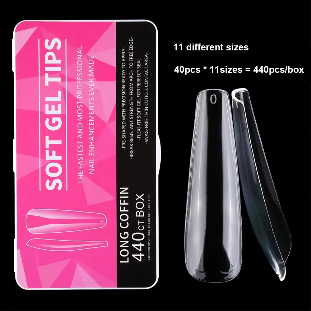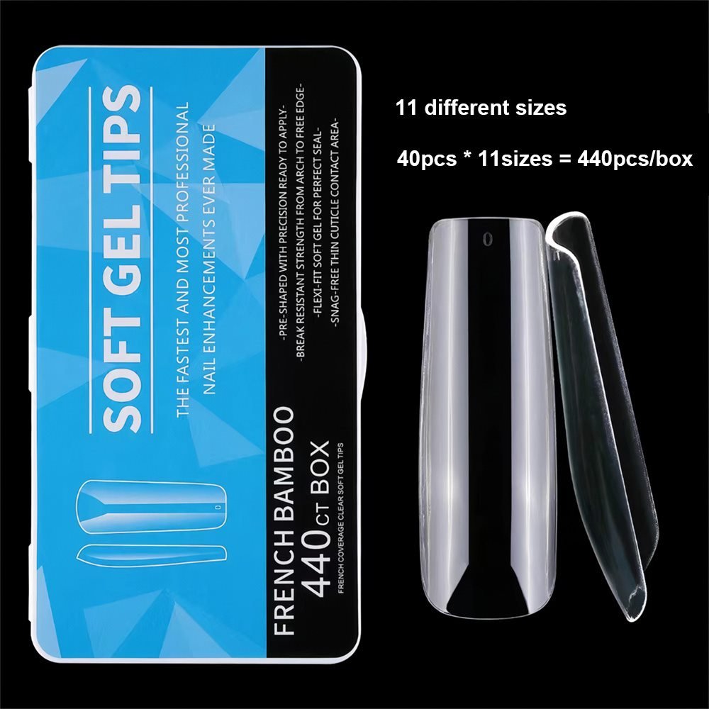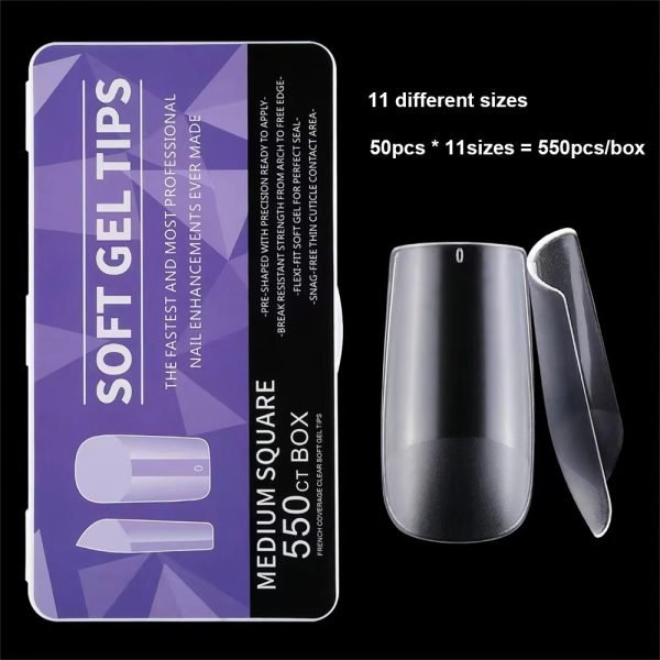- Each set of these ultra-thin seamless nail tips includes 1 white plastic box + 550 nail tips (11 sizes/50pcs each size) OR 440 nail tips(11 sizes/40pcs each size).