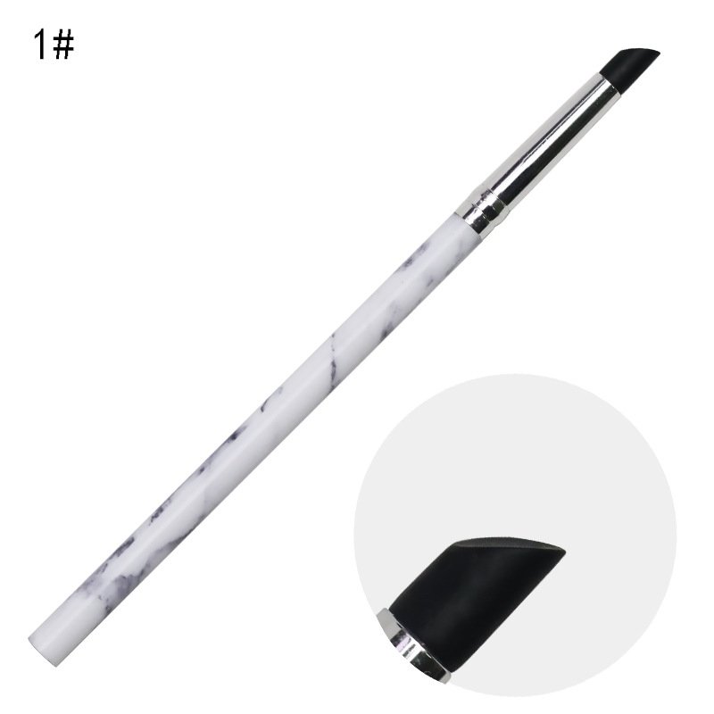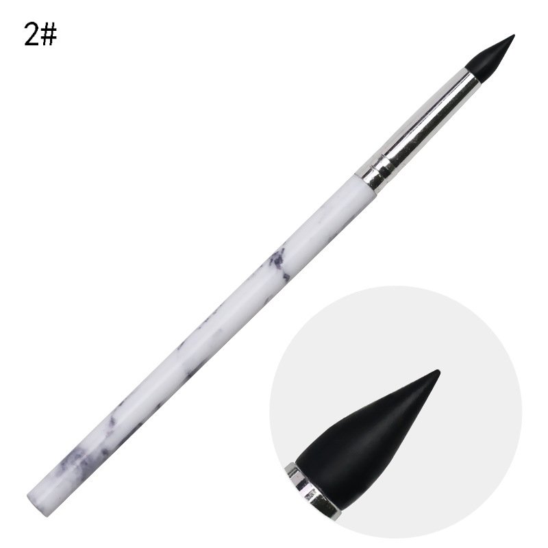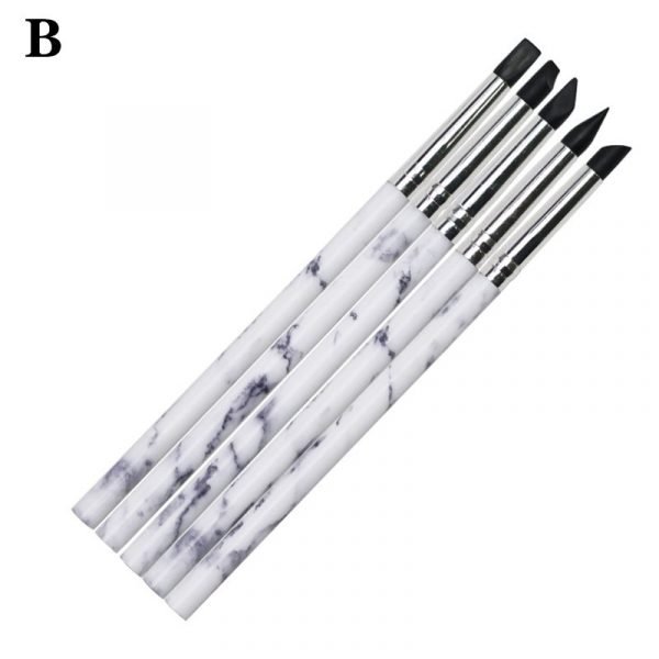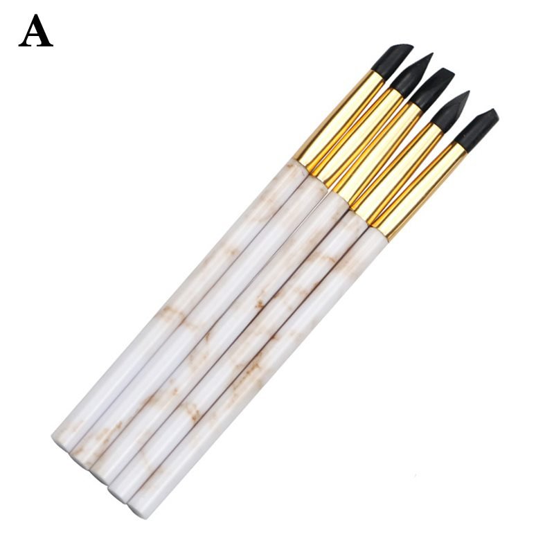 5PCS Marble Pattern Handle Nail Art Black Silicone Sculpture Pen