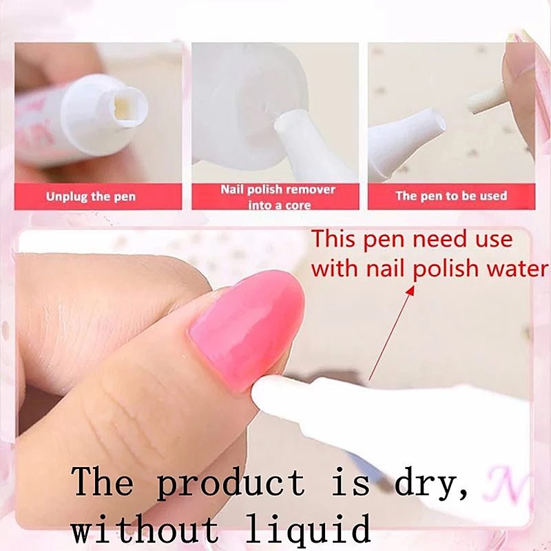 - Note: The nail polish remover pen is dry, you need to add nail polish remover to use it.