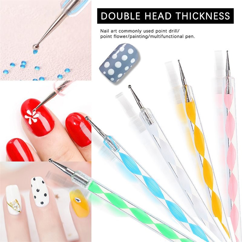 - 5 nail art dotting marbleizing pen with 2 different ends for different marbleizing desires.