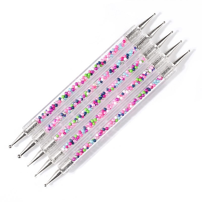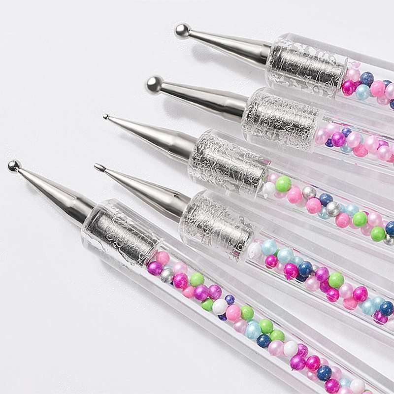 5pcs/set Acrylic Handle With Pearl Ball Inside 2 Way Marbleizing Dotting Pen Set