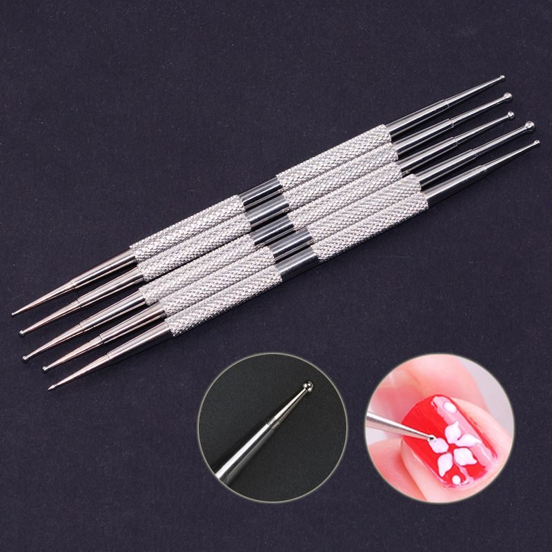 5pcs/set Stainless Steel Handle 2 Way Marbleizing Dotting Pen Set