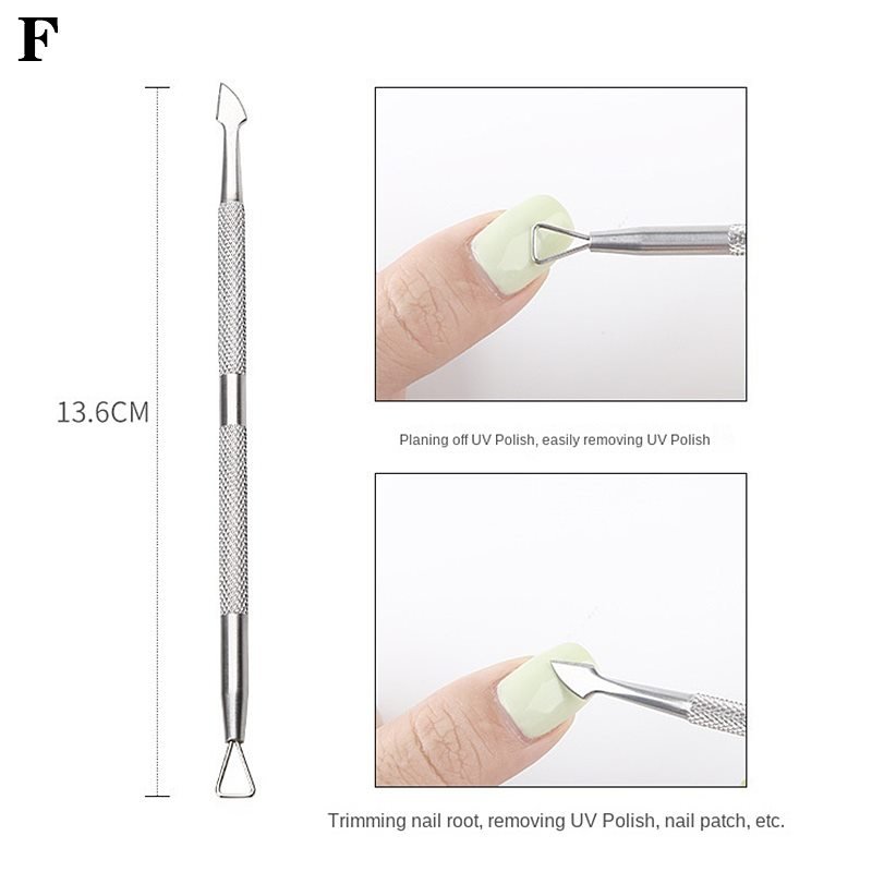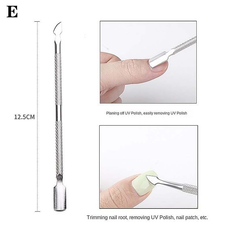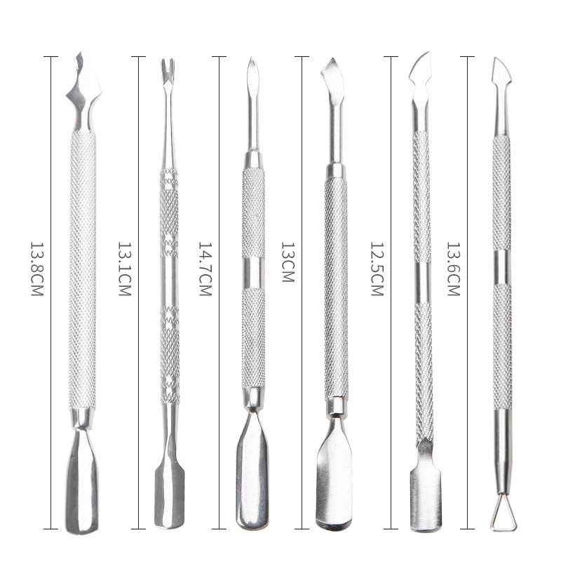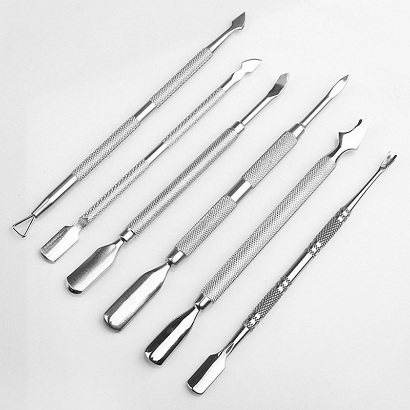 6 Designs Silver Stainless Steel Manicure Pedicure Remover Tool Cuticle Pusher