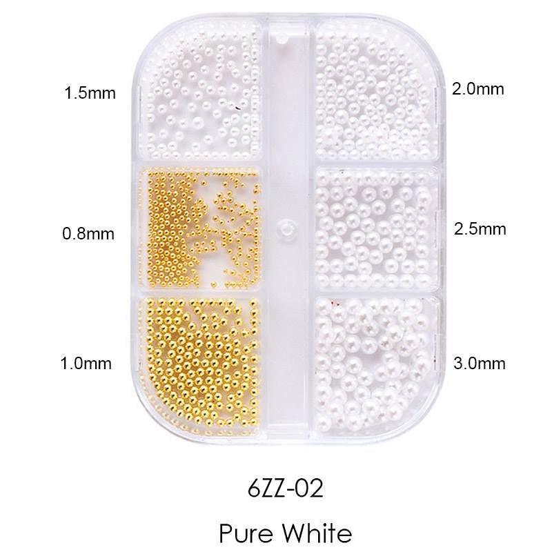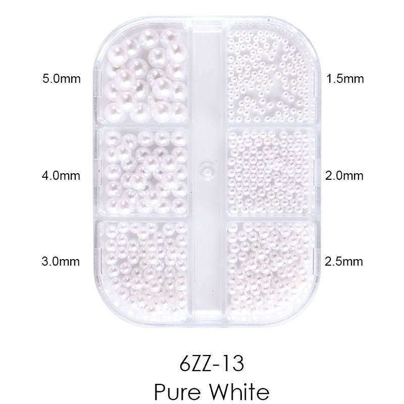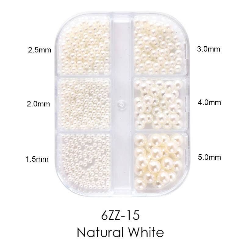 6Grids Mixed Sizes of Whole Round Pearl For Nail Art Decoration