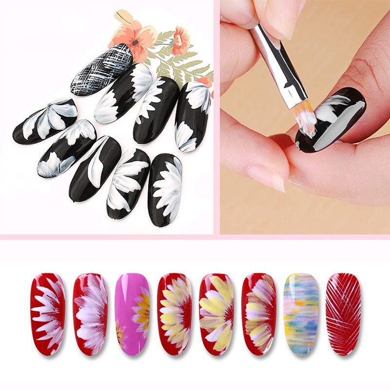 8 Types Plastic Handle Nail Art Brush One Stroke Flower Painting Petal Brush