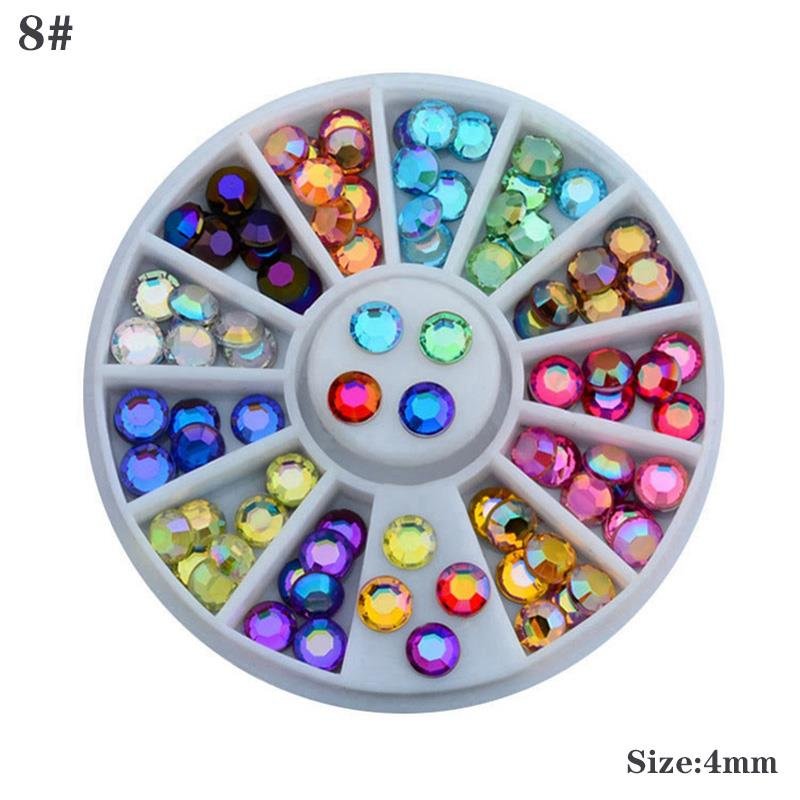 - Varied shapes of AB color shiny rhinestones in separate chambers of the wheel box provided