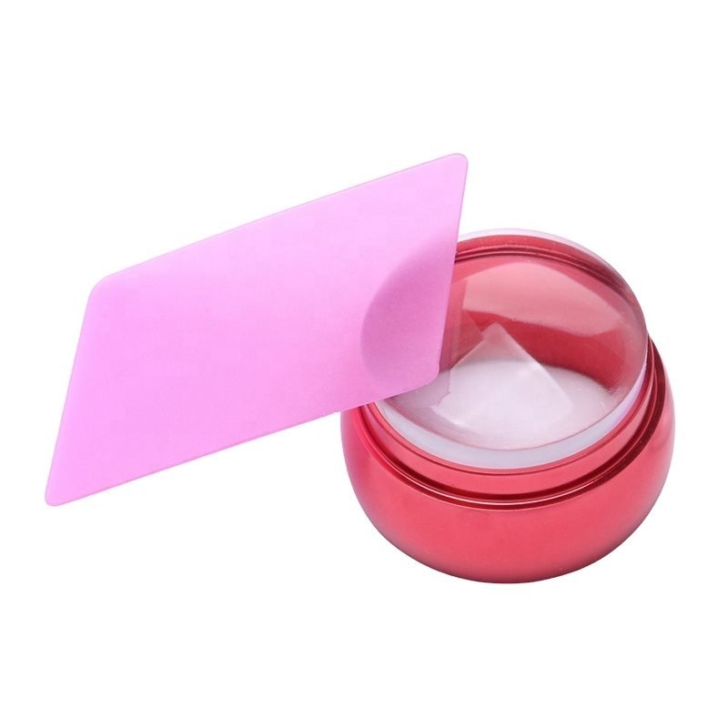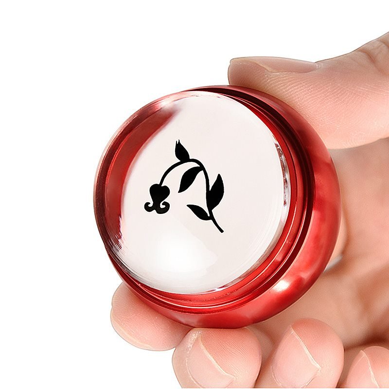 Dia 3.6cm Lovely Chess Design Red Metal Handle Silicone Jelly Nail Art Stamper with Cap