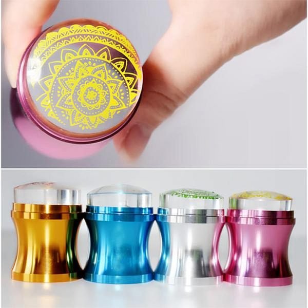Dia 4cm Slender Waist Shape Metal Handle Clear Silicone Jelly Head Nail Art Stamper with Cap