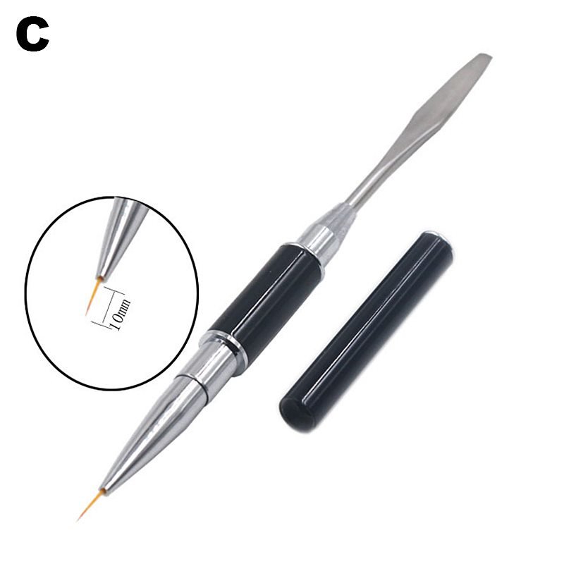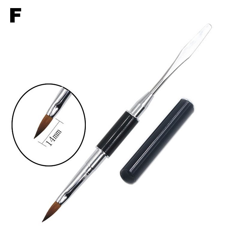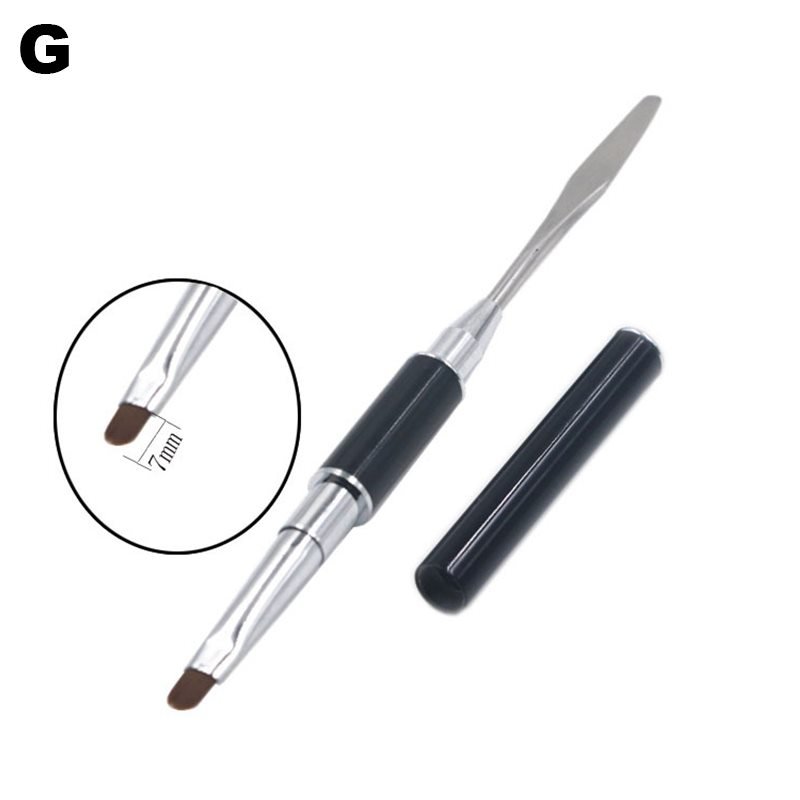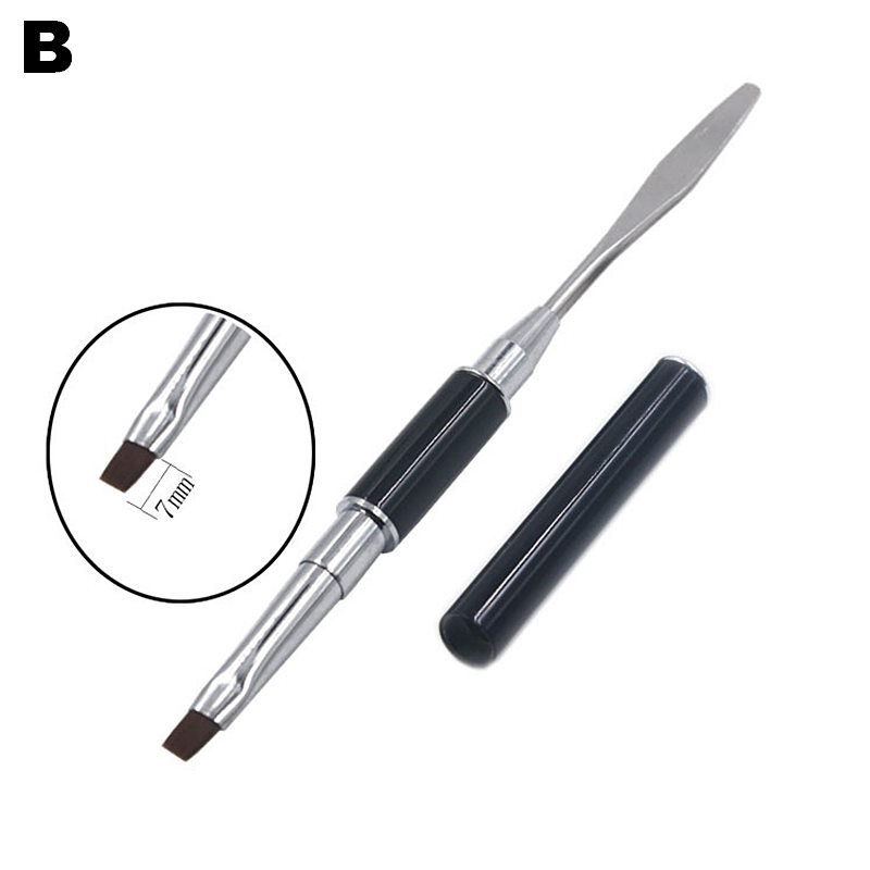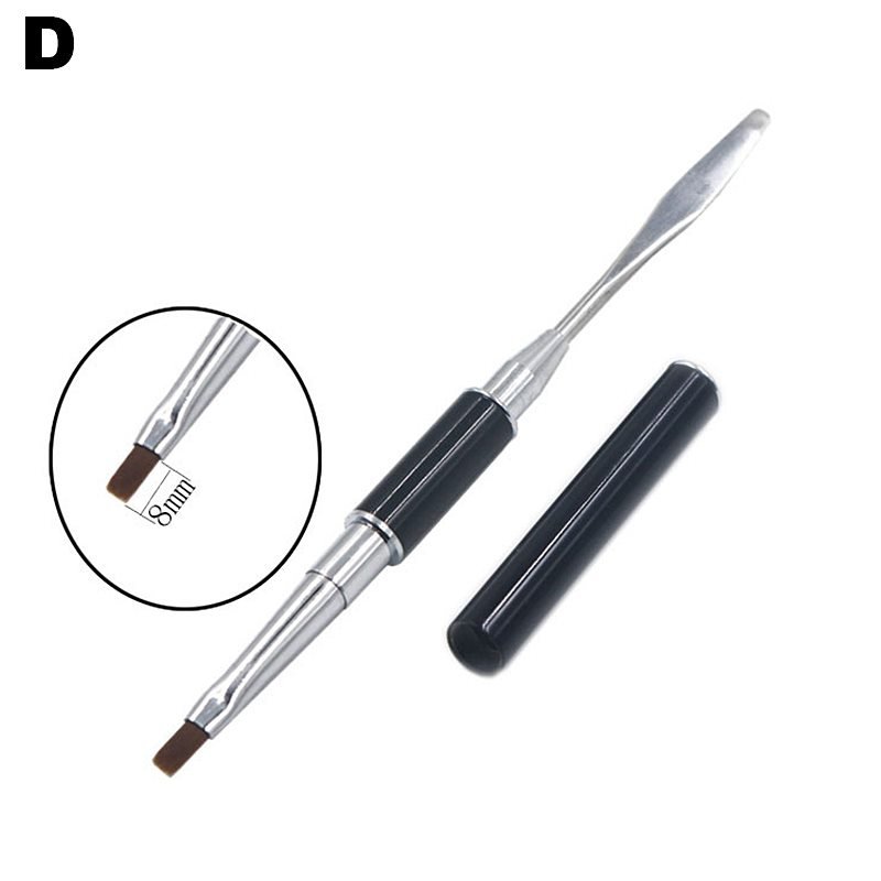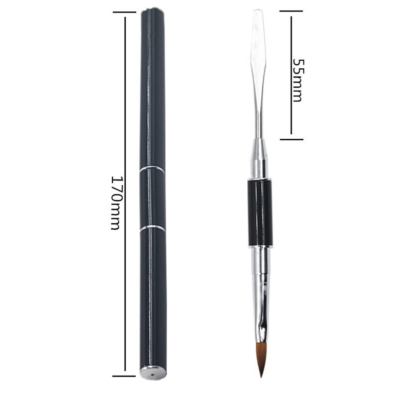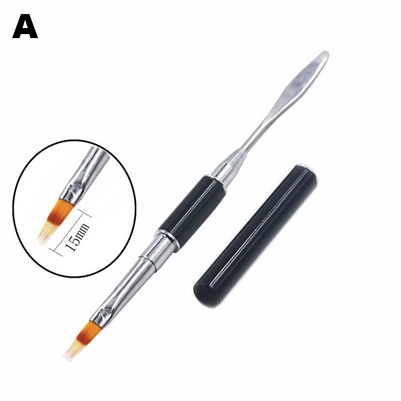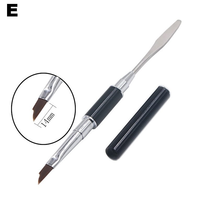 Dual End Nylon Hair Metal Handle Poly Gel Spatula 2 in 1 Nail Art Brush
