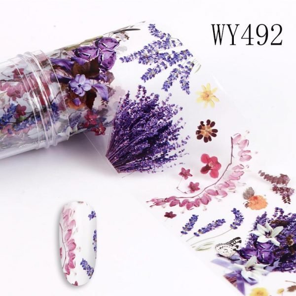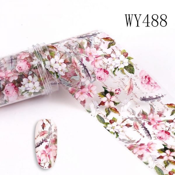 Flower And Leaf Pattern 4x100cm Nail Art Transfer Foil Roll WY487-WY496