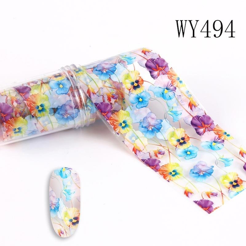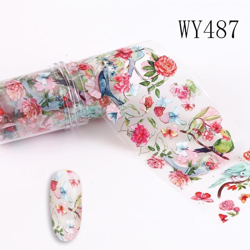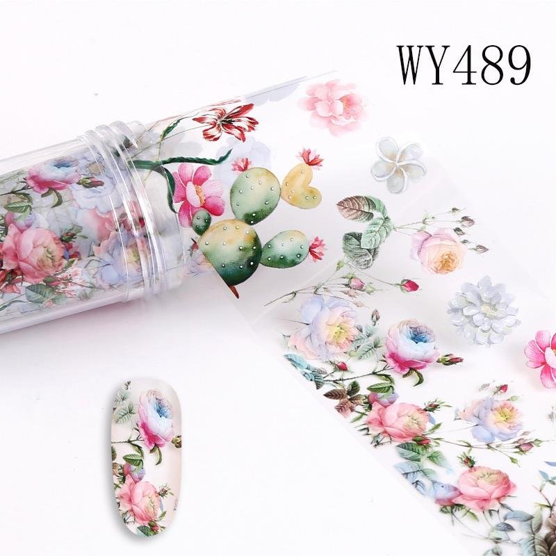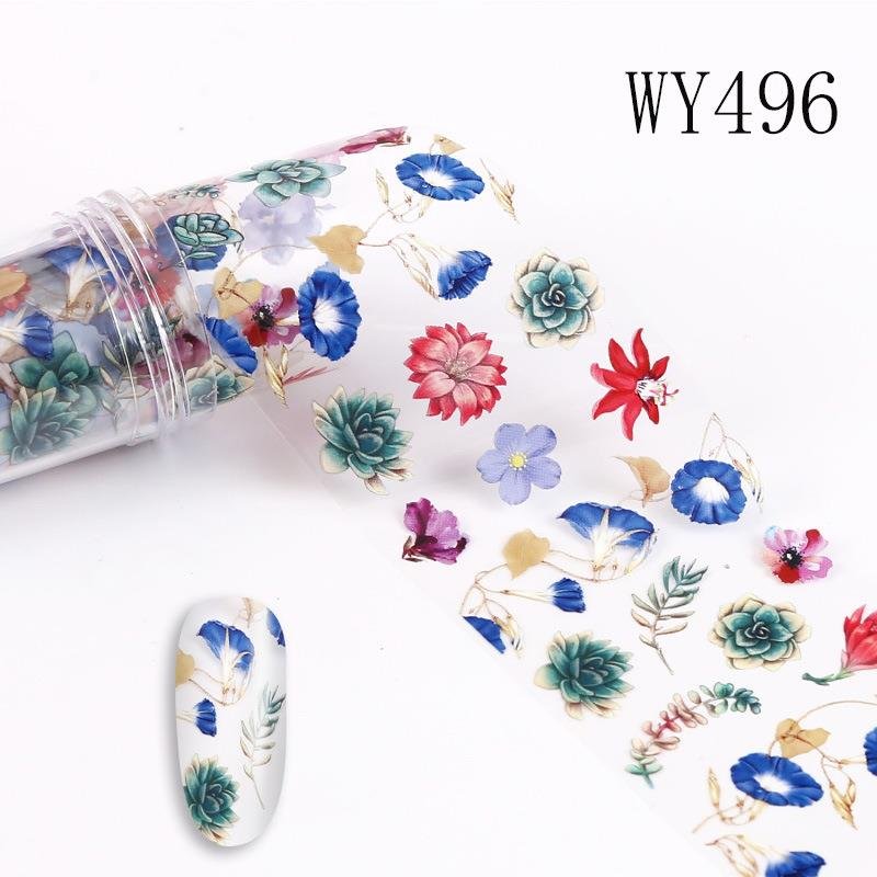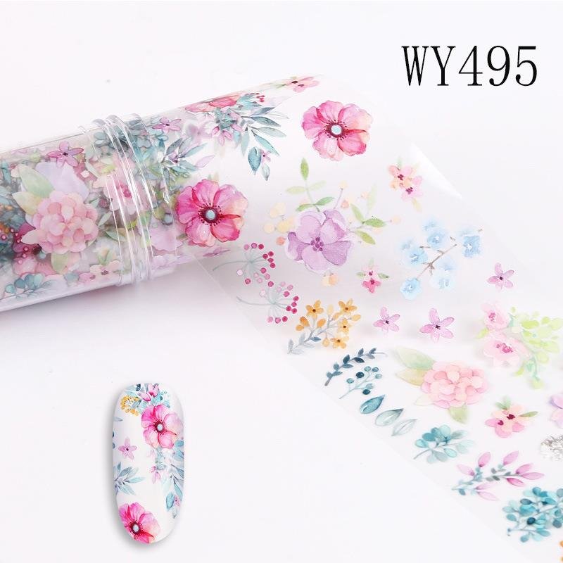 Flower And Leaf Pattern 4x100cm Nail Art Transfer Foil Roll WY487-WY496