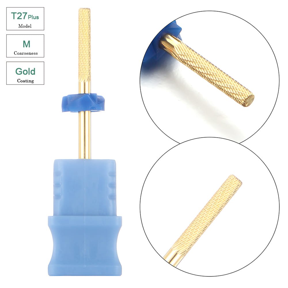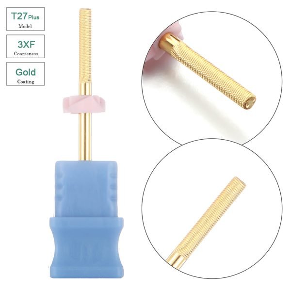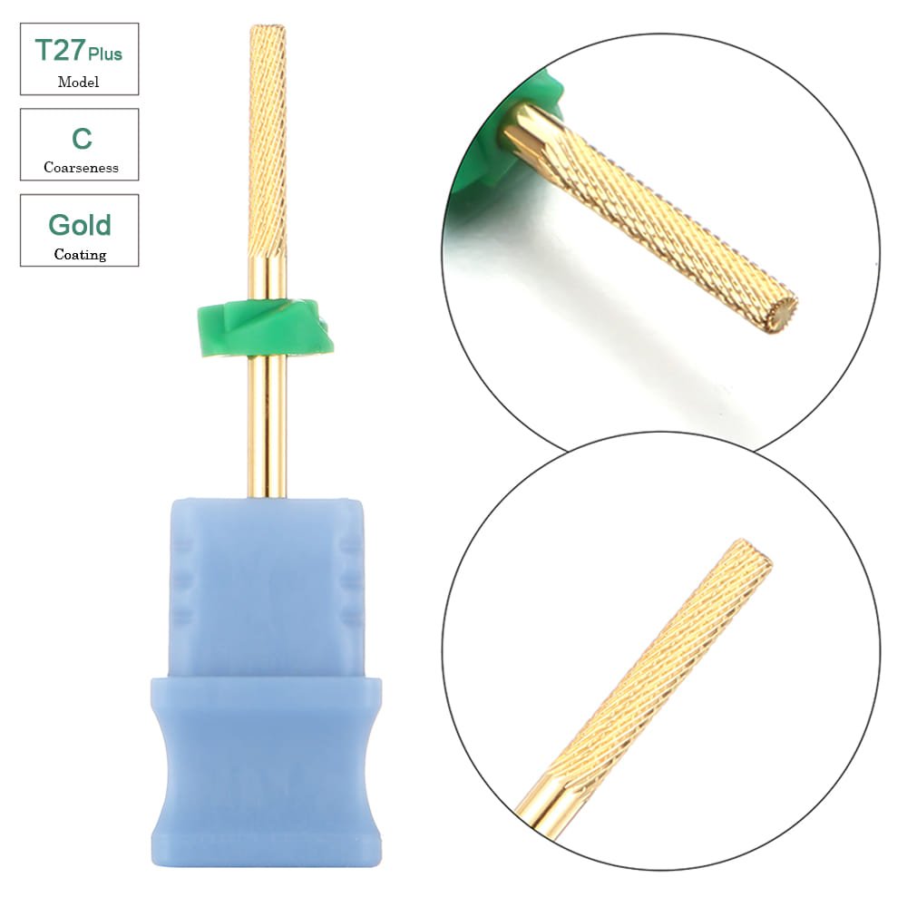 3/32″ Gold Coated Cuticle Dead Skin Cleaning Nature Nail Buffer Nail Drill Bit – Model T27Plus