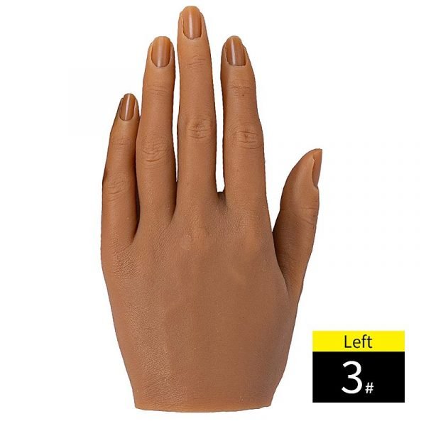 - High-quality flexible silicone model hand for nail art practice.