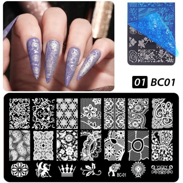 20 Lace Designs 6x12cm Nail Stamping Plates Stainless Steel Nail Stencils Image Plate BC01-BC20