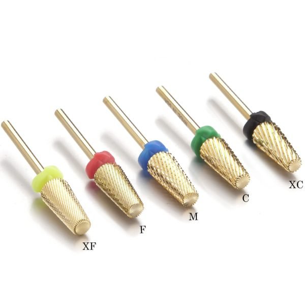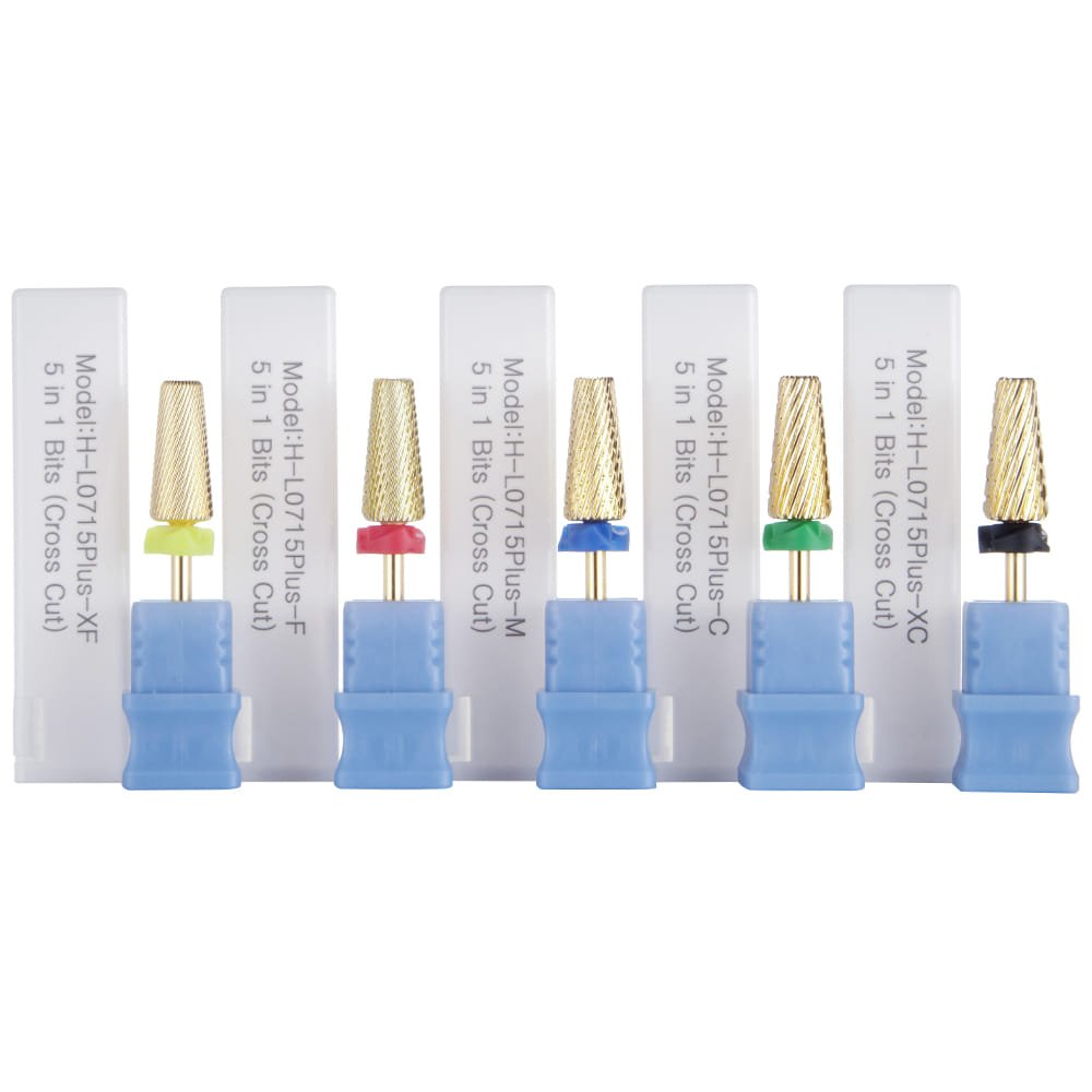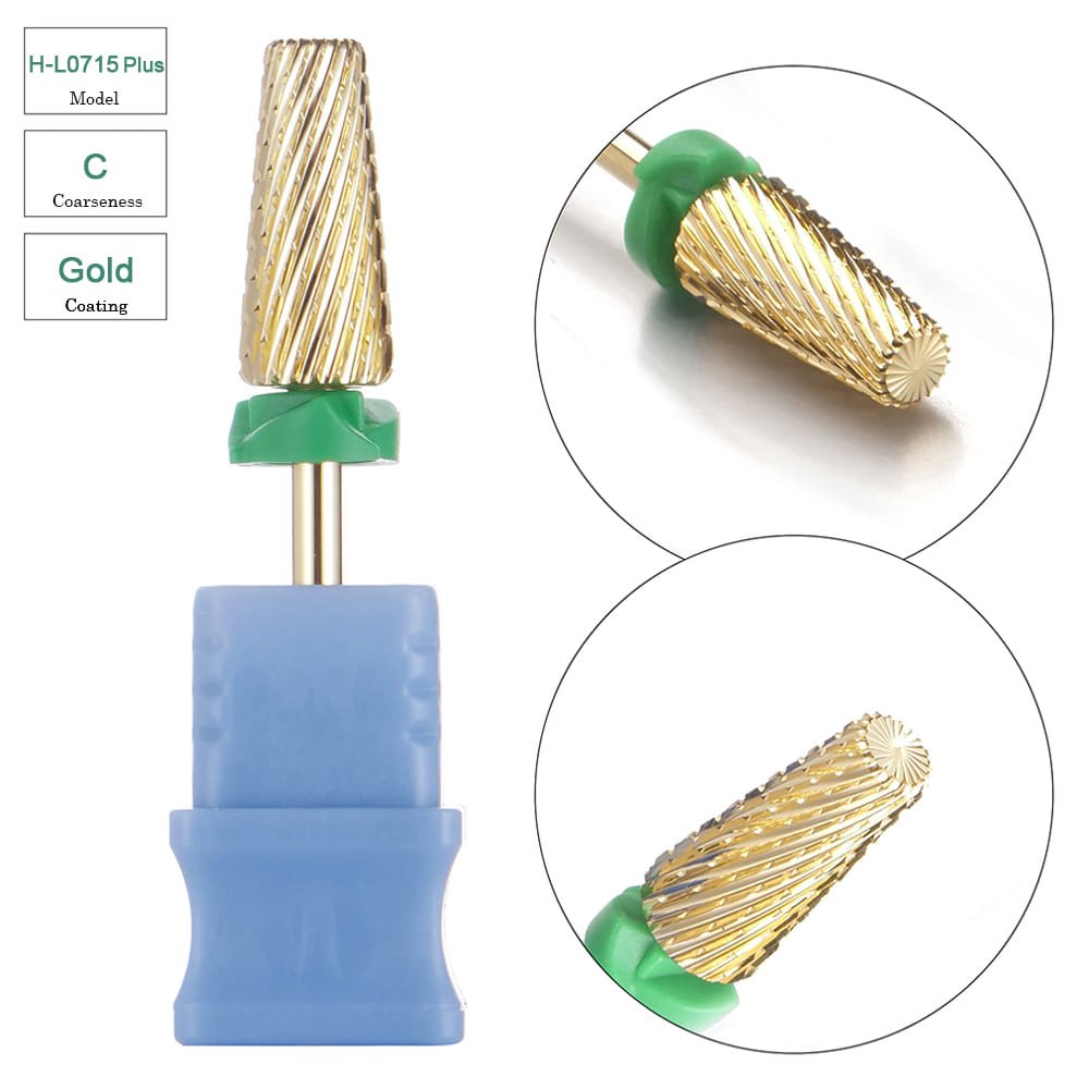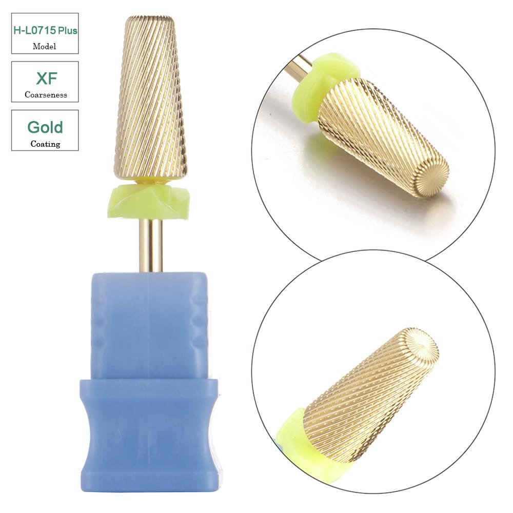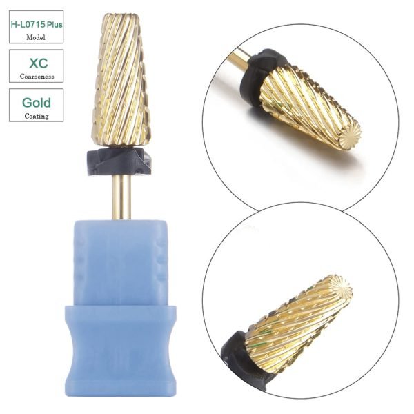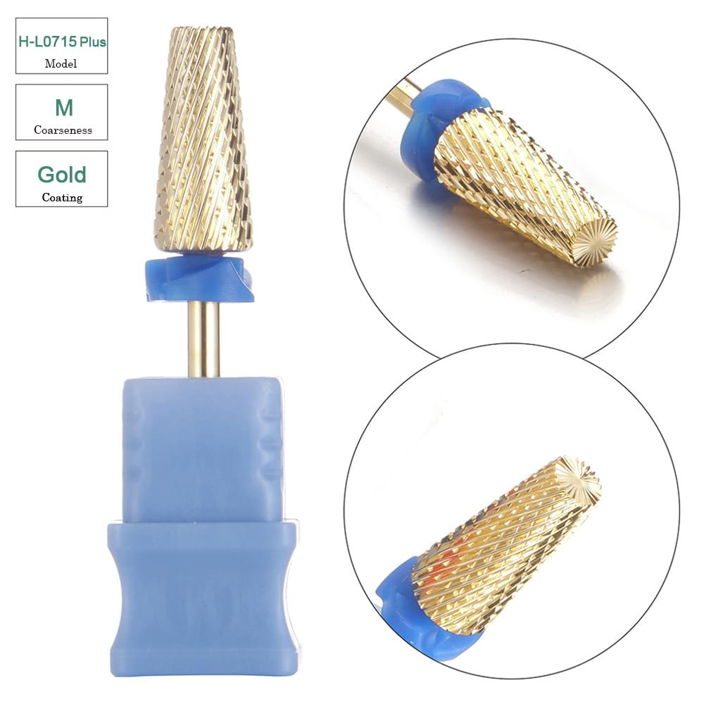3/32” Large Tapered 5 in 1 Cross Cut Gold Coating Tungsten Carbide Nail Drill Bits- Model H-L0715Plus