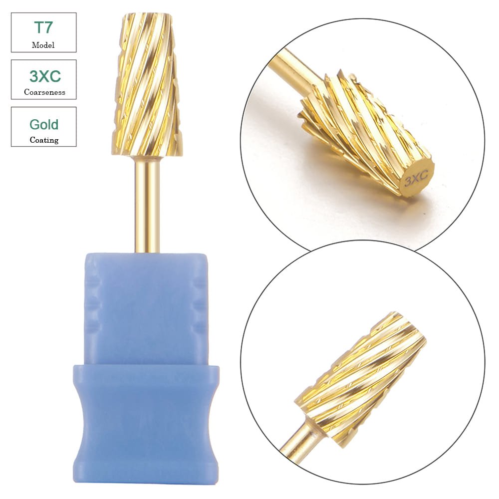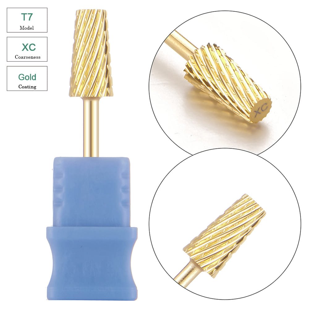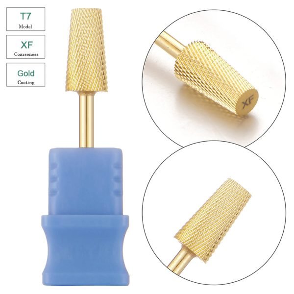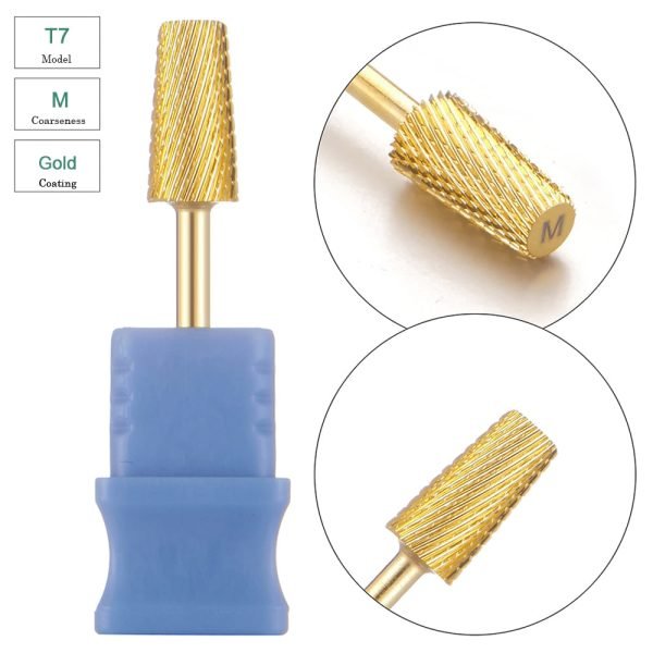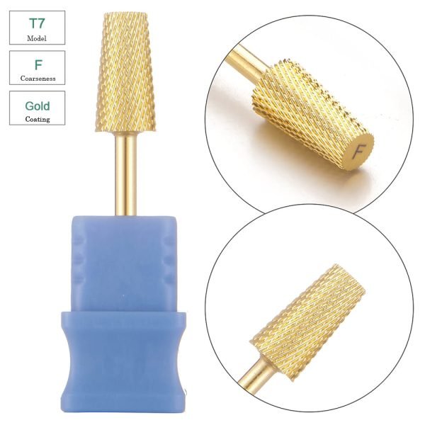 Large Tapered Barrel Cross Cut Gold Coating Tungsten Carbide Nail Drill Bit – Model T7