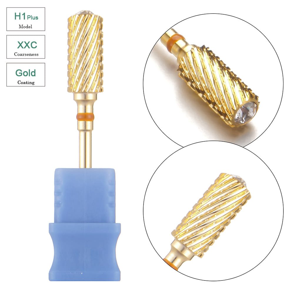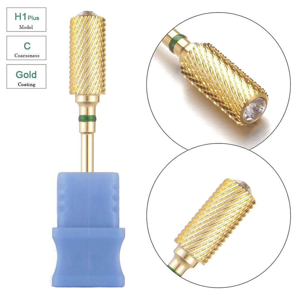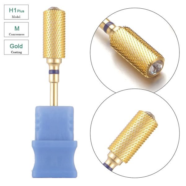 3/32″ Long Shank Crystal Top Large Barrel Gold Coating Tungsten Carbide Nail Drill Bits – Model H1Plus