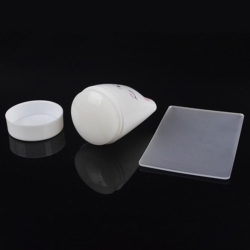 Lovely Rabbit Nail Art Stamper Scraper with Cap Soft Silicone Jelly 3.6cm Nail Stamping Tools