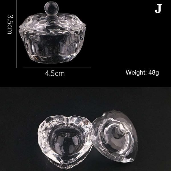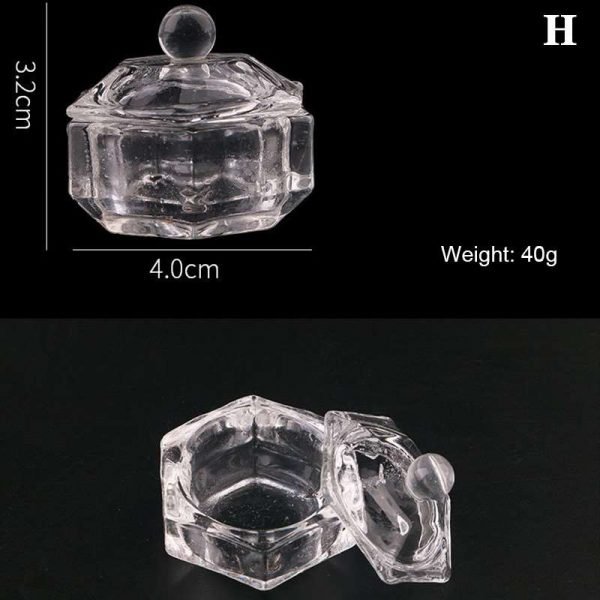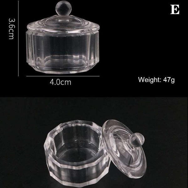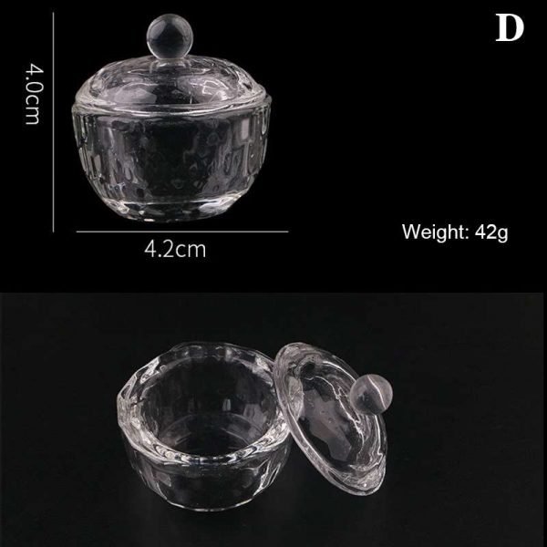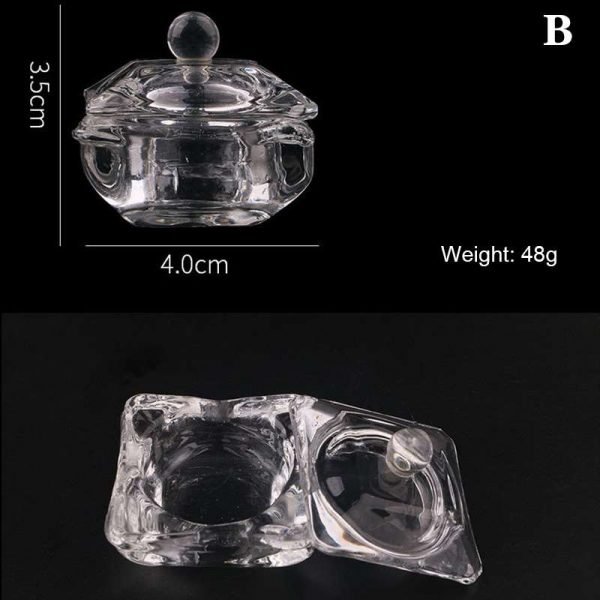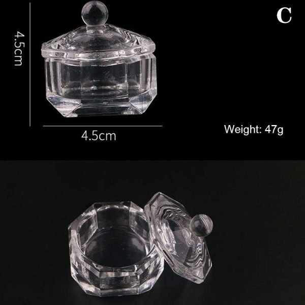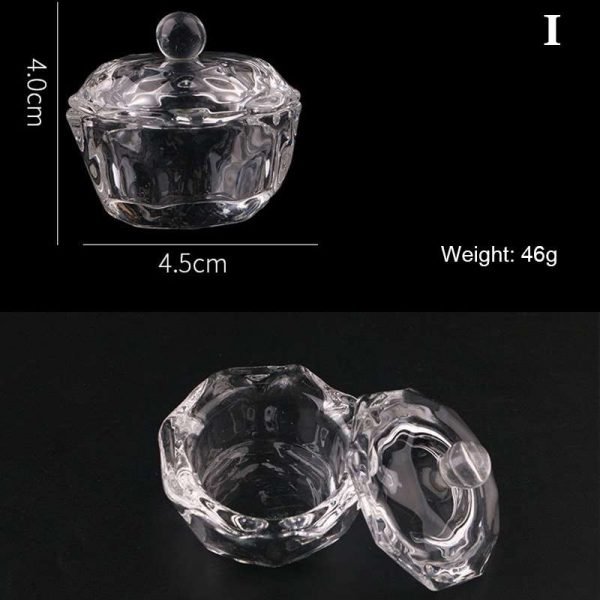 - Made of glass and very easy to use when using it for liquids, such as nail polish remover or acrylic liquid. And easy to wipe clean.