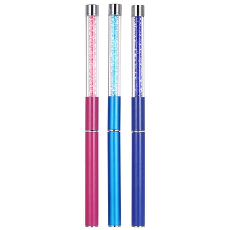 Nail Art Liner Detail Brush With Rhinestone Metal Handle And Cap