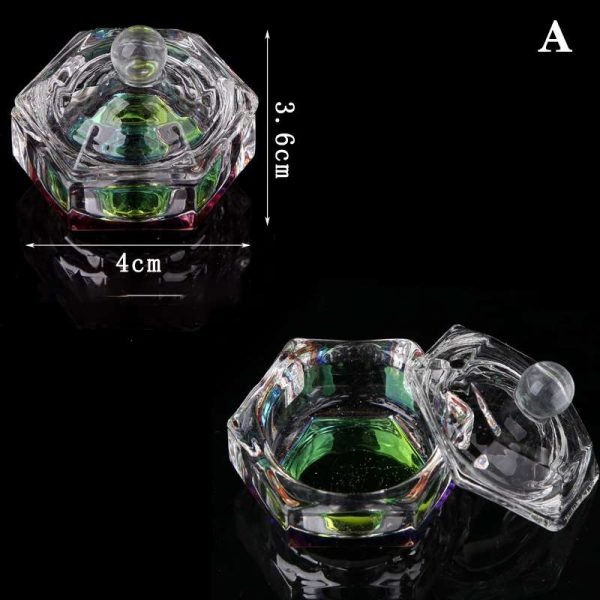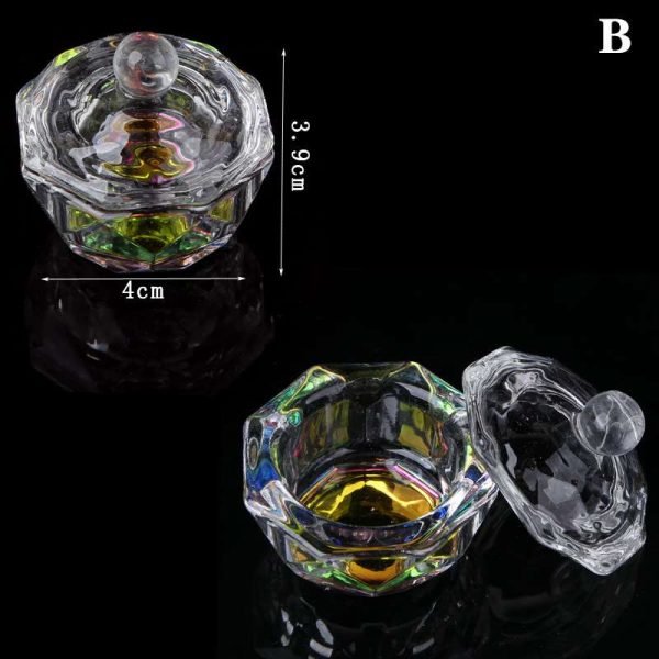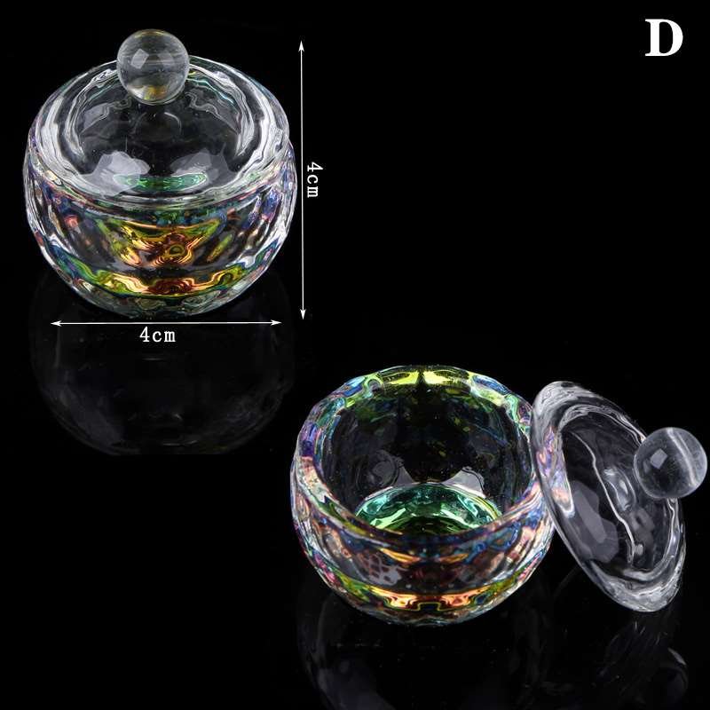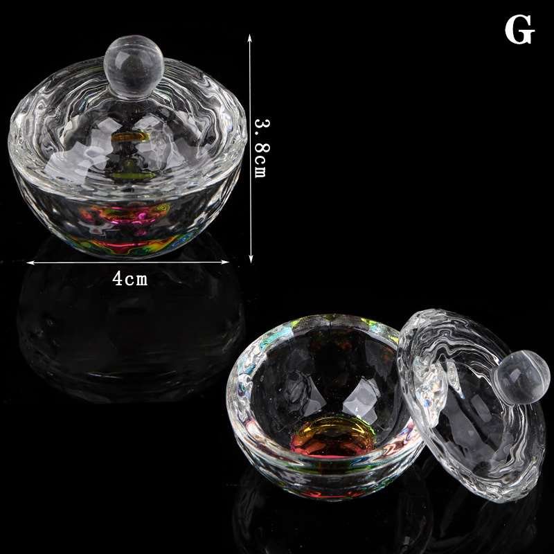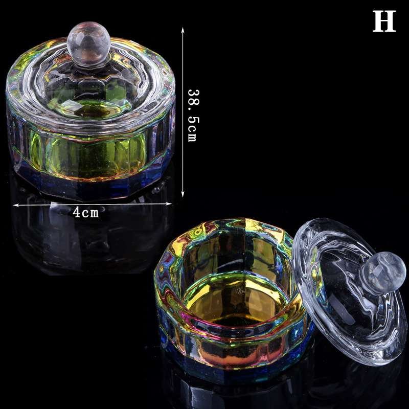 Nail Art Rainbow Color Crystal Glass Acrylic Dappen Dish With Lid