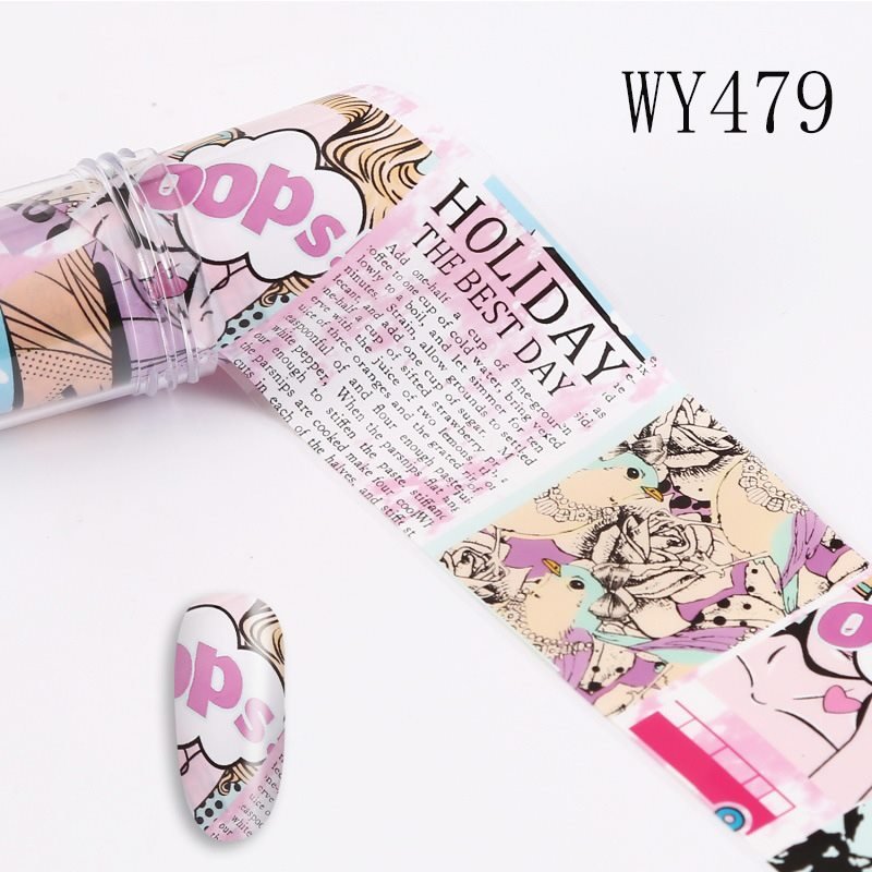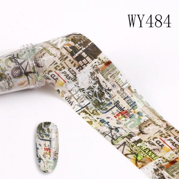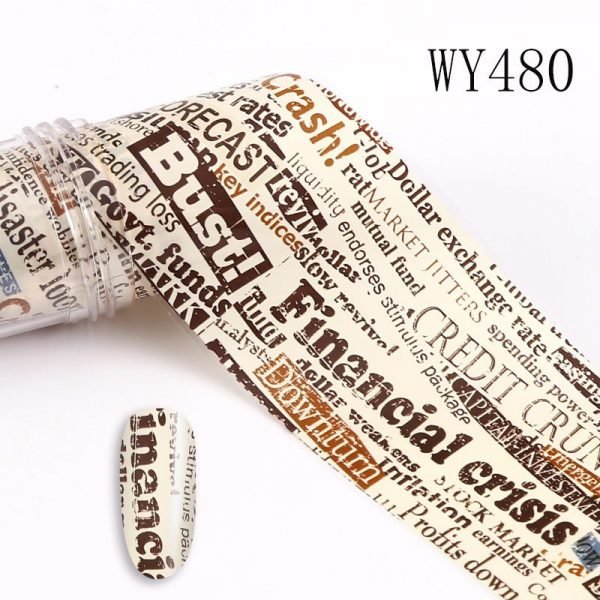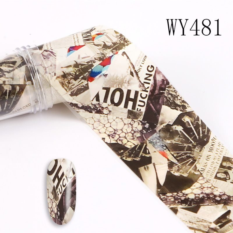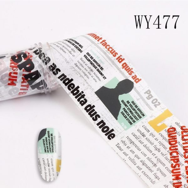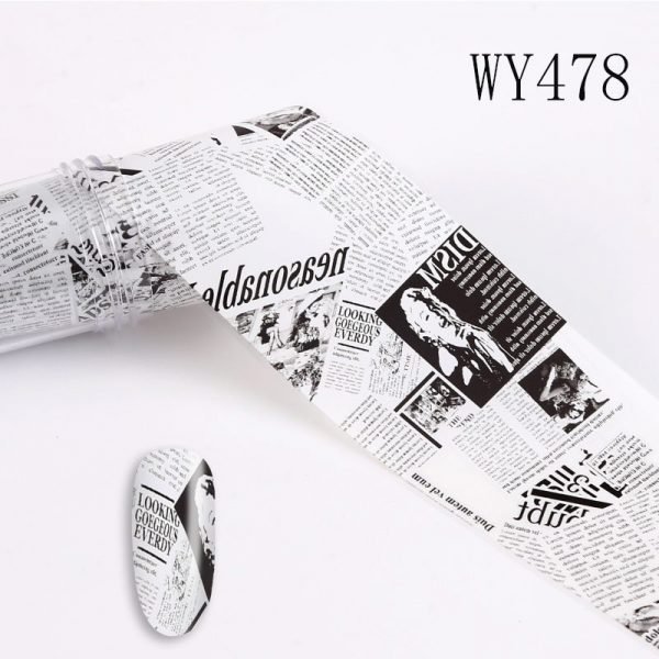 Newspaper Style Pattern 4x100cm Nail Art Transfer Foil Roll WY477-WY486