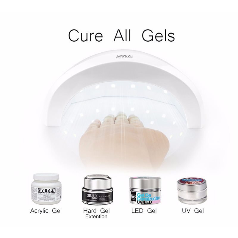 - The new technology of double light source covers a wider range of ultraviolet bands, suitable for drying nail UV-gel, builder gel, nail polish gel, sculpture gel, gem gel and LED nail gel. No need to worry about distinguishing your nail gel.