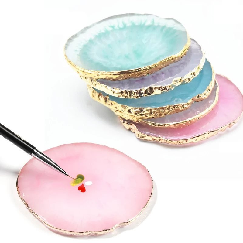 Round Shape Resin Nail Art Color Mixing Palette And Artwork Display Board